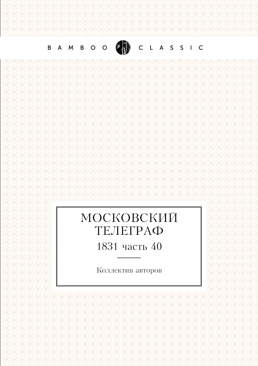 Эта книга - репринт оригинального издания (издательство "Типография А. Семена", 1831 год), созданный на основе электронной копии высокого разрешения, которую очистили и обработали вручную, сохранив структуру и орфографию оригинального издания. Редкие, забытые и малоизвестные книги, изданные с петровских времен до наших дней, вновь доступны в виде печатных книг. Первый русский энциклопедический журнал. Выходил в 1825-1834 гг. С 1826 г. «Московский телеграф» регулярно печатает статьи в либеральном духе о политических событиях вне России, с 1828 г. выступает в защиту «среднего сословия» и против дворянских привилегий, начинает полемику с «литературной аристократией» Пушкиным и его кругом. Приобретший репутацию политически неблагонадёжного издания, закрыт в 1834 г.Репринтное издание по технологии print-on-demand с оригинала 1831 года