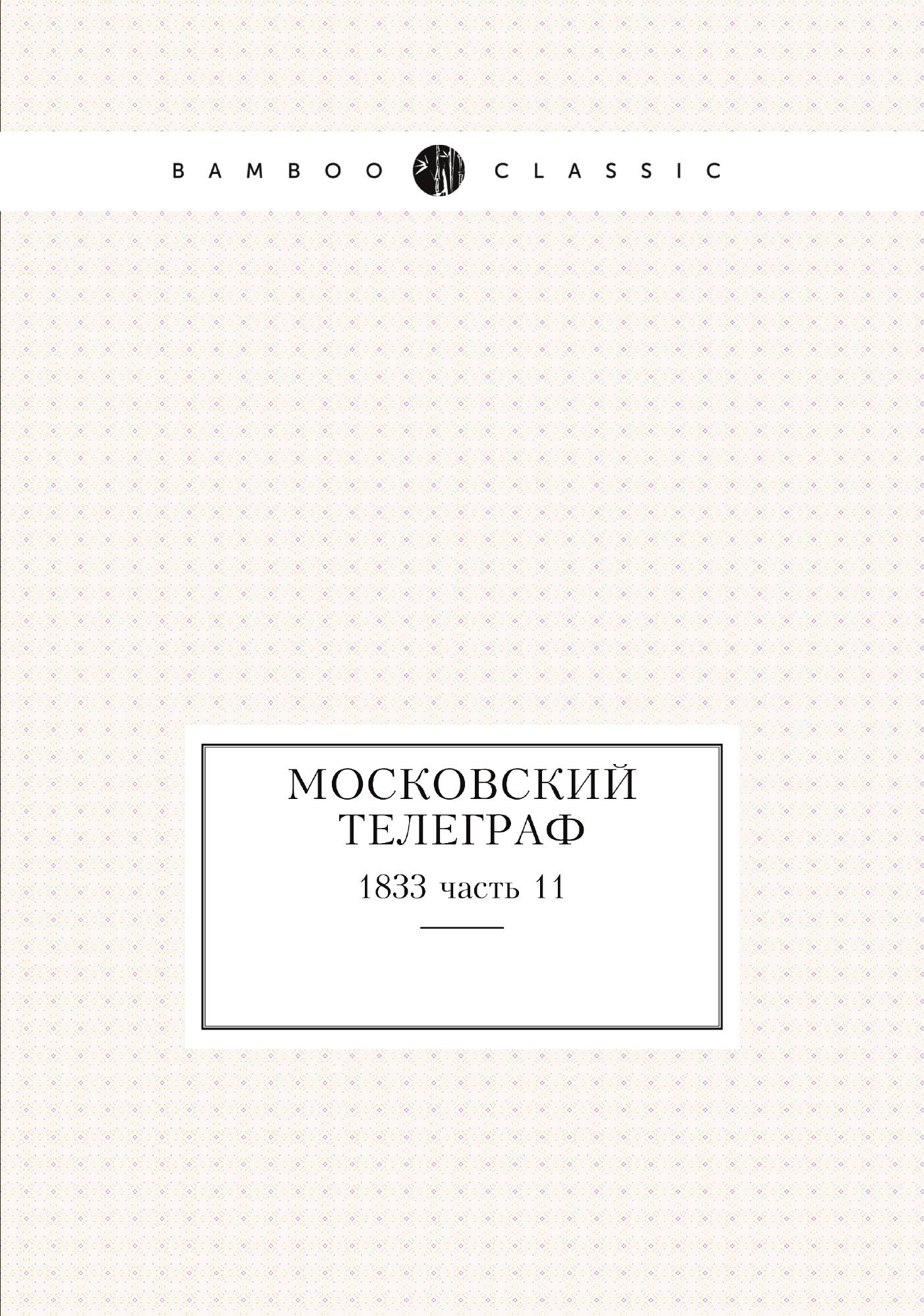 Эта книга - репринт оригинального издания (издательство "Типография А. Семена", 1833 год), созданный на основе электронной копии высокого разрешения, которую очистили и обработали вручную, сохранив структуру и орфографию оригинального издания. Редкие, забытые и малоизвестные книги, изданные с петровских времен до наших дней, вновь доступны в виде печатных книг. Первый русский энциклопедический журнал. Выходил в 1825-1834 гг. С 1826 г. «Московский телеграф» регулярно печатает статьи в либеральном духе о политических событиях вне России, с 1828 г. выступает в защиту «среднего сословия» и против дворянских привилегий, начинает полемику с «литературной аристократией» Пушкиным и его кругом. Приобретший репутацию политически неблагонадёжного издания, закрыт в 1834 г.Репринтное издание по технологии print-on-demand с оригинала 1833 года