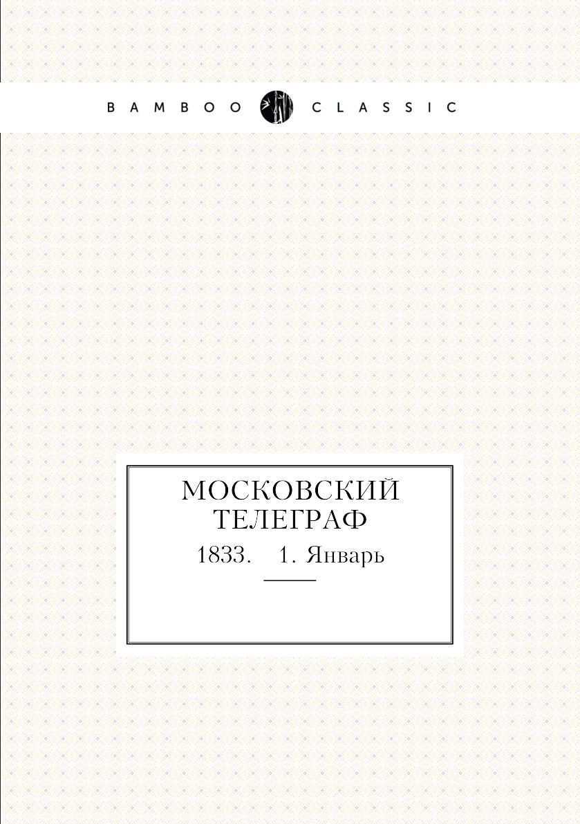 Эта книга - репринт оригинального издания (издательство "Типография А. Семена", 1833 год), созданный на основе электронной копии высокого разрешения, которую очистили и обработали вручную, сохранив структуру и орфографию оригинального издания. Редкие, забытые и малоизвестные книги, изданные с петровских времен до наших дней, вновь доступны в виде печатных книг. Первый русский энциклопедический журнал. Выходил в 1825-1834 гг. С 1826 г. «Московский телеграф» регулярно печатает статьи в либеральном духе о политических событиях вне России, с 1828 г. выступает в защиту «среднего сословия» и против дворянских привилегий, начинает полемику с «литературной аристократией» Пушкиным и его кругом. Приобретший репутацию политически неблагонадёжного издания, закрыт в 1834 г.Репринтное издание по технологии print-on-demand с оригинала 1833 года