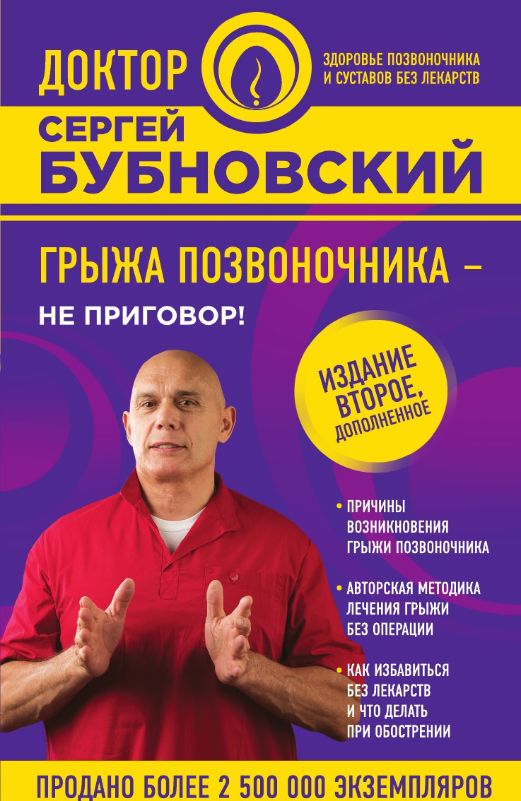 Все больше и больше людей, имеющих проблемы со спиной разочаровываются в общепринятых методах лечения: операциях и лекарственных препаратах. Известный врач Бубновский Сергей Михайлович в своей книге предлагает принципиально новый подход к решению проблемы грыжи позвоночника без операции. Что такое боль в спине? Как быть со страхами, возникающими у человека при диагнозе «грыжа позвоночника»? Какой путь выбрать для борьбы с этой проблемой? Нужен ли корсет при болях в спине? Что такое правильное движение? Как преодолеть страх перед движением? Как лечить грыжу позвоночника без лекарств? На эти и другие вопросы отвечает доктор Бубновский, имеющий за плечами более тридцати лет работы с самыми тяжелыми случаями болезни и умеющий справляться с ними без хирургических вмешательств, применяя правильные упражнения. Эта книга поможет как молодым людям в укреплении их здоровья, так и пожилым людям, имеющим тяжелые сопутствующие заболевания. Интересно, необычно, искренне!