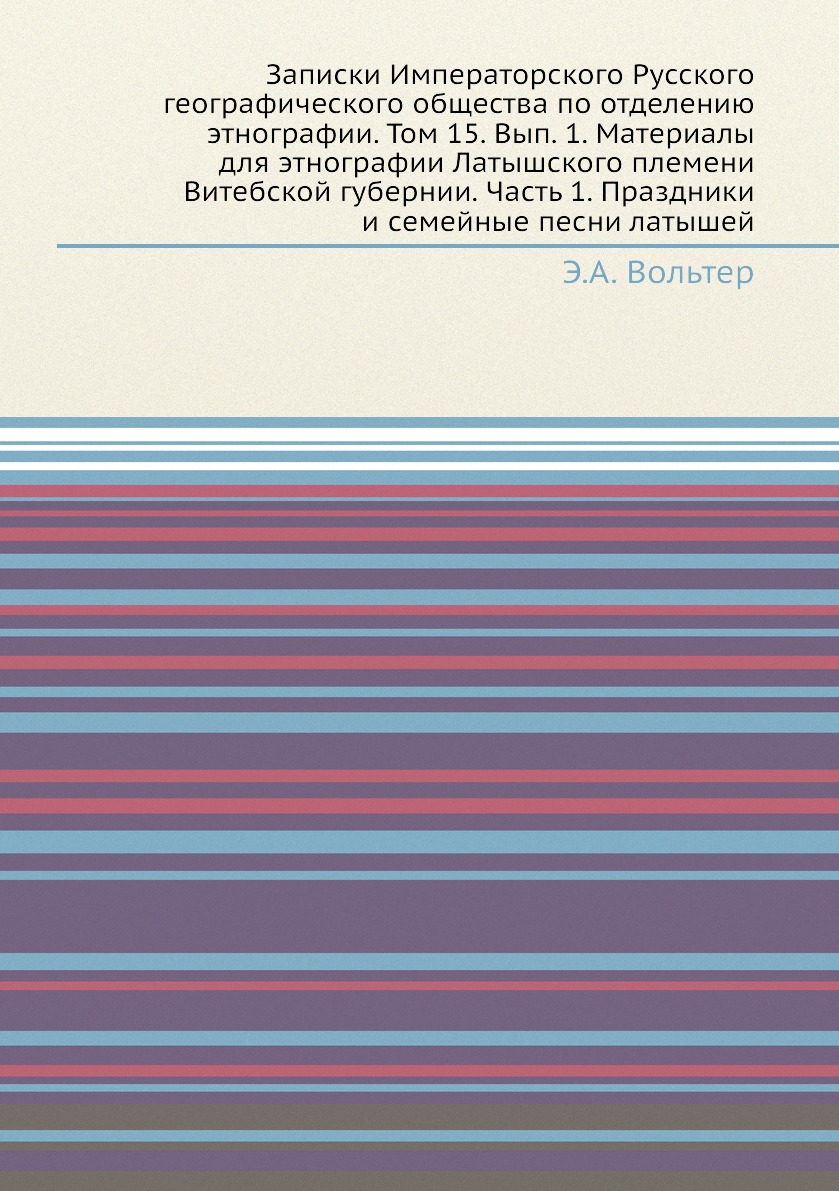 Аннотация: Записки Императорского Русского географического общества по отделению этнографии. Том 15. Вып. 1. Материалы для этнографии Латышского племени Витебской губернии. Часть 1. Праздники и семейные песни латышей