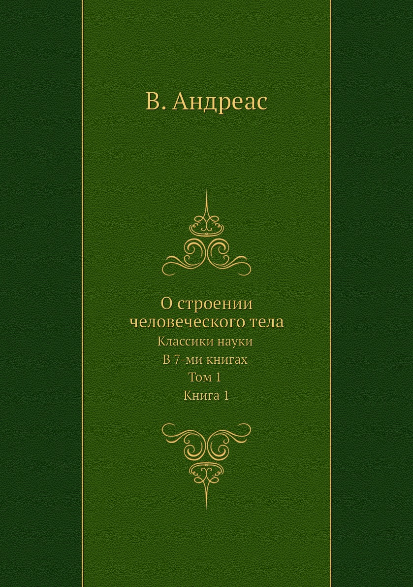 Эта книга - репринт оригинального издания (издательство "Издательство Академии наук СССР", 1950 год), созданный на основе электронной копии высокого разрешения, которую очистили и обработали вручную, сохранив структуру и орфографию оригинального издания. Редкие, забытые и малоизвестные книги, изданные с петровских времен до наших дней, вновь доступны в виде печатных книг. Труд Везалия явился началом современной анатомии; в нем впервые в истории анатомии было дано не умозрительное, а вполне научное описание строения человеческого тела, основанное на экспериментальных исследованиях. Отец анатомии, Везалий внес огромный вклад в анатомическую терминологию на латинском языке. Взяв за основу наименования, введенные Авлом Корнелием Цельсом (I в. до н.э.), Везалий придал анатомической терминологии единообразие, выбросил, за крайне редкими исключениями, все средневековые варваризмы. Одновременно он свел до минимума грецизмы, что в какой-то мере можно объяснить его неприятием многих положений галеновской медицины. Примечательно, что будучи новатором в анатомии, Везалий полагал, что носителем психического являются «животные духи», которые вырабатываются в желудочках мозга. Этот взгляд напоминал теорию Галена, ибо указанные «духи» были всего лишь переименованной «психической пневмой» древних.