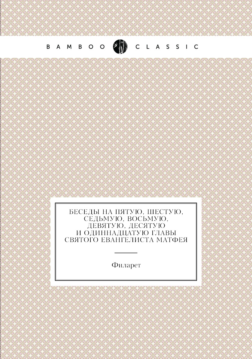 Эта книга - репринт оригинального издания (издательство "Киев. Типография Киево-Печерской лавры", 1842 год), созданный на основе электронной копии высокого разрешения, которую очистили и обработали вручную, сохранив структуру и орфографию оригинального издания. Редкие, забытые и малоизвестные книги, изданные с петровских времен до наших дней, вновь доступны в виде печатных книг. Беседы на пятую, шестую, седьмую, восьмую, девятую, десятую и одиннадцатую главы святого евангелиста Матфея, говоренные Святейшего правительствующего синода членом Филаретом, митрополитом Киевским и Галицким, Киево-Печерской лавры священно-архимандритом и разных орденов кавалером.