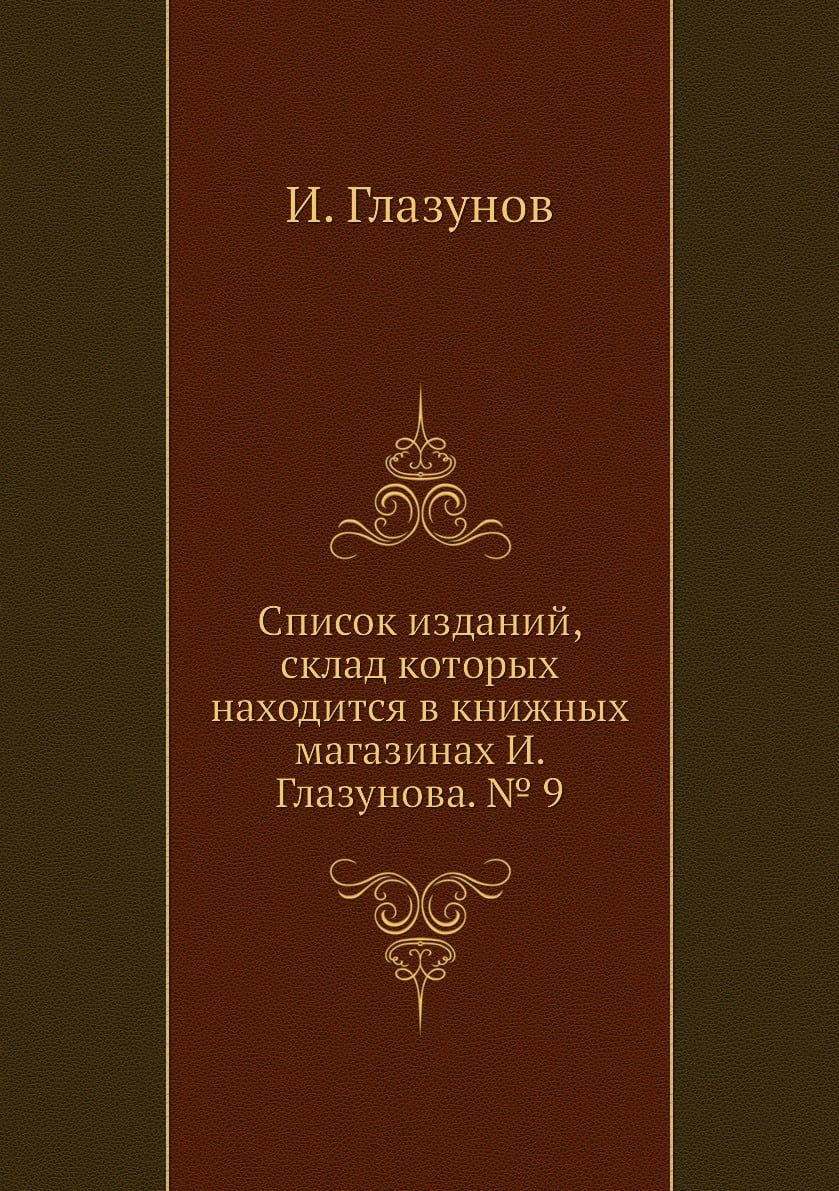 Аннотация: Список изданий, склад которых находится в книжных магазинах И. Глазунова. № 9