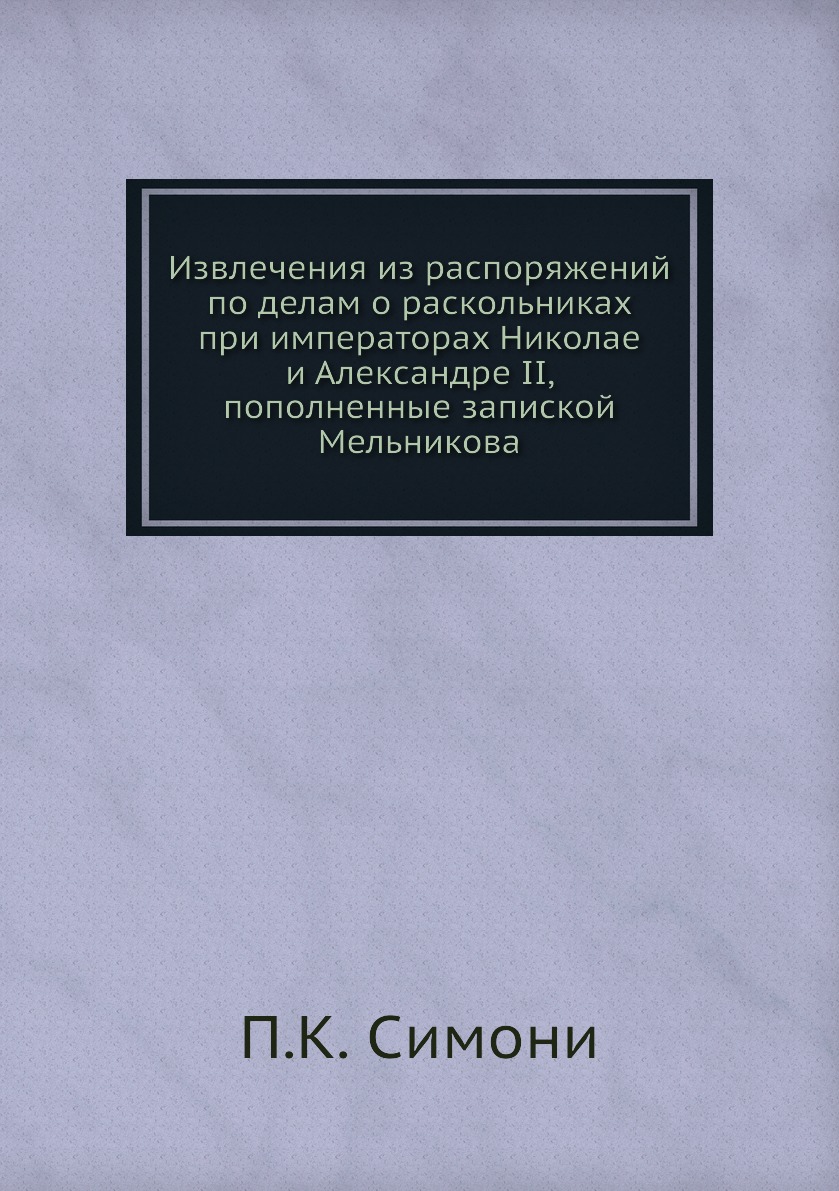 Аннотация: Извлечения из распоряжений по делам о раскольниках при императорах Николае и Александре II, пополненные запиской Мельникова
