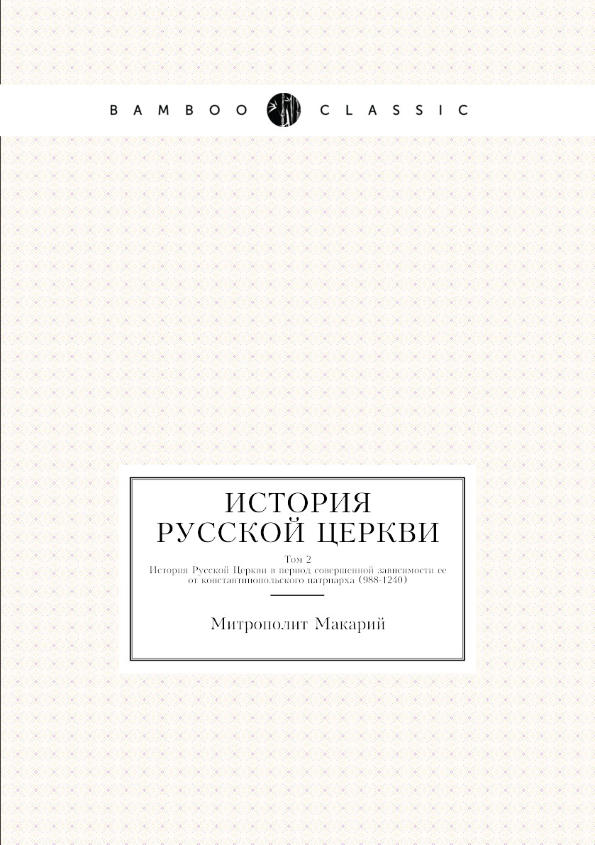 Во вторую книгу многотомного издания «История Русской Церкви» высокопреосвященного Макария, митрополита Московского и Коломенского, вошли тома его «Истории Русской Церкви», посвященные домонгольскому периоду русской церковной истории.