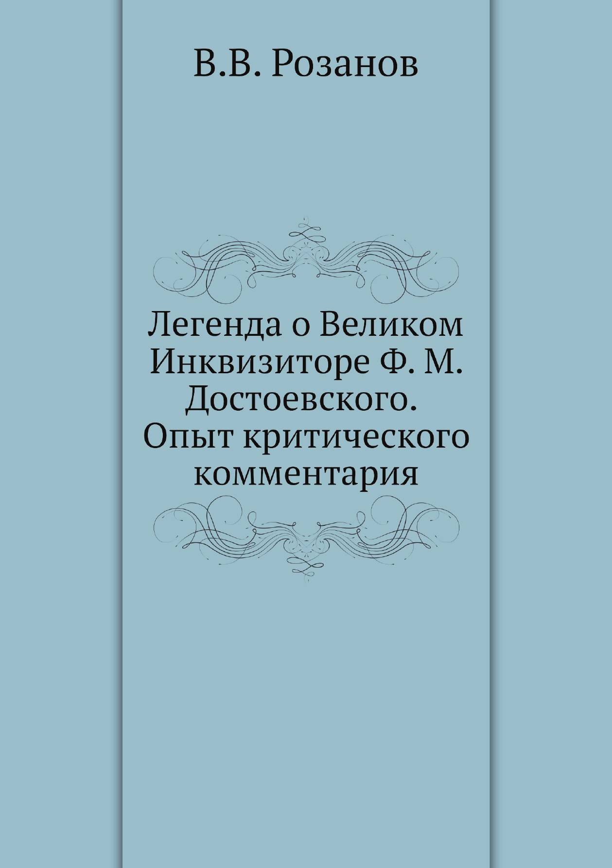 «Легенда о Великом Инквизиторе Ф. М. Достоевского» первое подлинное завоевание таланта Василия Розанова, принесший ему немалую известность. Розанов всю жизнь был увлечен Достоевским. Но порой высказывался о нем нелестно: «Достоевский, как пьяная, нервная баба, вцепился в «сволочь» на Руси и стал ее пророком»., Розановская «Легенда о Великом Инквизиторе» начинается с рассмотрения главного вопроса православной философии о бессмертии человека. Жажда бессмертия, земного бессмертия, есть самое удивительное и совершенно несомненное чувство у человека. Самая характерная черта книги восторженность. Ее можно назвать не только живым, но и раскрашенным во имя поэтической и художественной наглядности художественно-философским повествованием по мотивам творчества Достоевского.