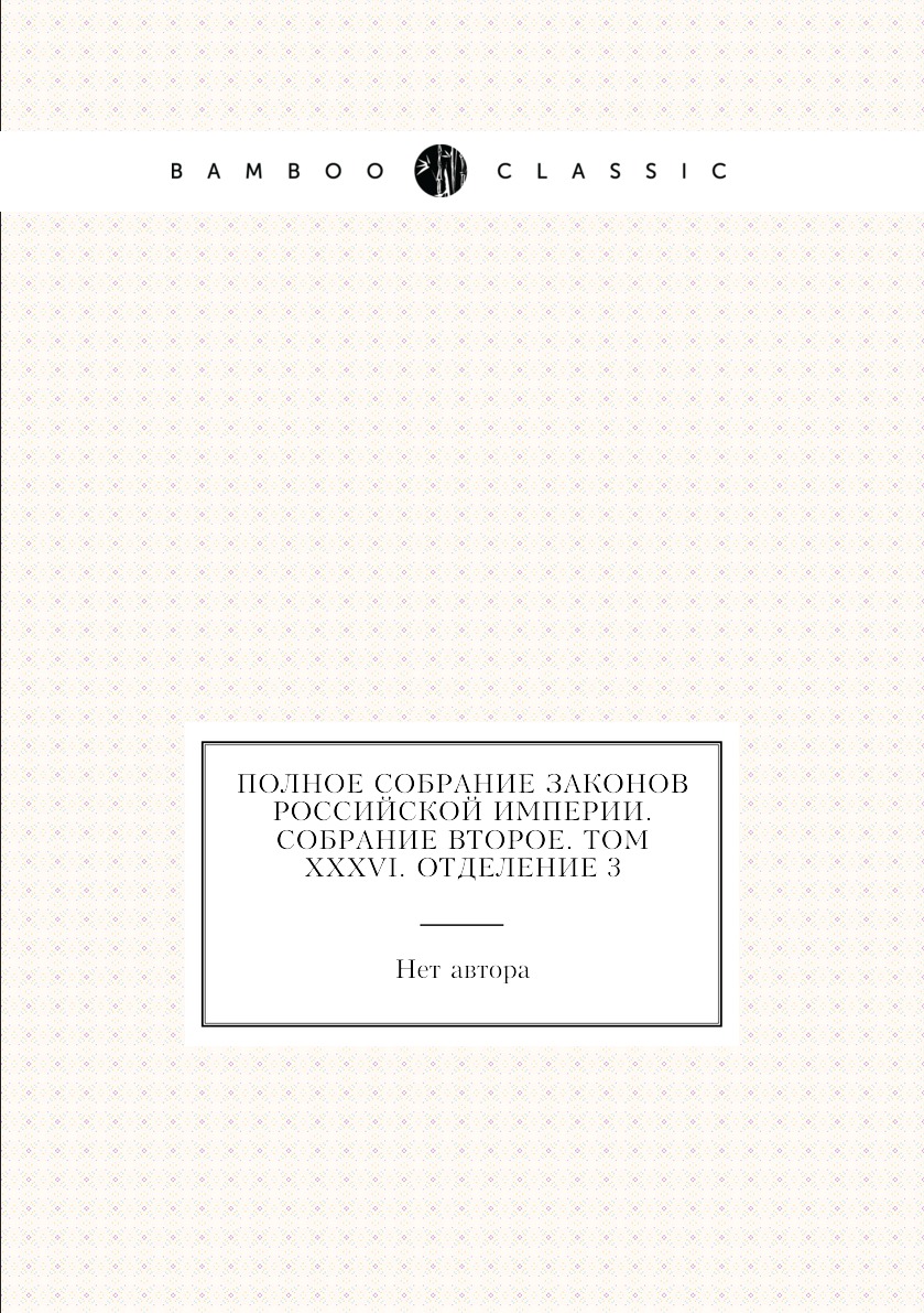 Аннотация: Полное собрание законов Российской Империи. Собрание Второе. Том XXXVI. Отделение 3