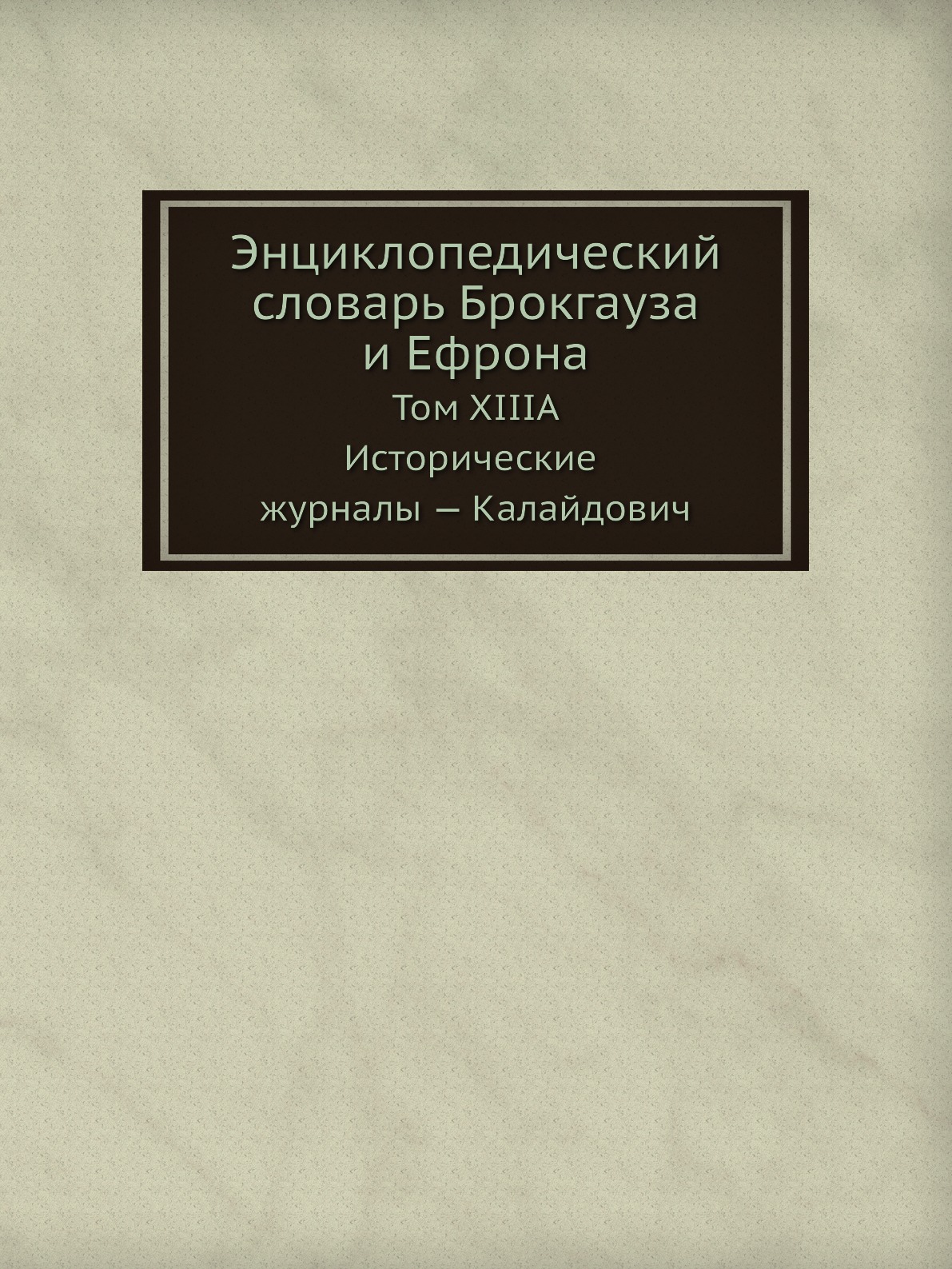 Эта книга - репринт оригинального издания (издательство "Санкт-Петербург", 1894 год), созданный на основе электронной копии высокого разрешения, которую очистили и обработали вручную, сохранив структуру и орфографию оригинального издания. Редкие, забытые и малоизвестные книги, изданные с петровских времен до наших дней, вновь доступны в виде печатных книг. Самая крупная дореволюционная русская универсальная энциклопедия, выпущенная акционерным издательским обществом «Ф. А. Брокгауз - И. А. Ефрон». Состоит из 86 томов (82 основных и 4 дополнительных), выходивших в течение 1890-1907 годов. Первые 8 томов (до буквы «В») вышли под общей редакцией профессора И. Е. Андреевского и в основном содержали переводы на русский язык статей знаменитой немецкой энциклопедии Брокгауза «Konversations Lexikon». После кончины Андреевского новая редакция во главе с К. К. Арсеньевым и Ф. Ф. Петрушевским значительно увеличила число оригинальных статей и привлекла к сотрудничеству широкий круг общественно-политических деятелей либерального толка (от П. Н. Милюкова, В. И. Герье, Н. И. Кареева до легальных марксистов П. Б. Струве и М. И. Туган-Барановского, раздел философии вел крупнейший русский религиозный философ Вл. С. Соловьев), а также таких крупнейших ученых как Д. И. Менделеев, А. И. Бекетов, А. И. Воейков, Д. И. Анучин, Ю. М. Шокальский, Н. М. Книпович, А. О. Ковалевский, А. И. Советов, В. С. Соловьев и др.Ежегодно выходили в свет 4-5 томов.На сегодня Энциклопедический словарь Брокгауза и Ефрона является общественным достоянием: хотя в научно-техническом плане энциклопедия уже сильно устарела, многие её статьи по-прежнему представляют исключительную историческую ценность.