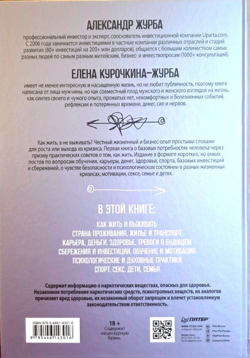 Как жить, а не выживать? Честный жизненный и бизнес-опыт простыми словами для роста или выхода из кризиса. Первая книга о базовых потребностях человека через призму практических советов о том, как жить. Издание в формате коротких, но емких постов по вопросам обучения, карьеры, денег, здоровья, спорта, базовых инвестиций и сбережений, о чувстве безопасности и психологическом состоянии в разных жизненных кризисах, мотивации, сексе, семье и детях.