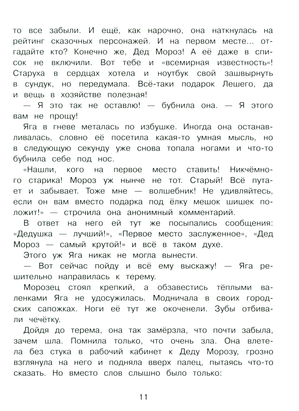 Продолжение сказочной повести «Нового года не будет!» Баба Яга стала первой помощницей Деда Мороза и живет в его вотчине. Но как-то раз накануне Нового года она натыкается в интернете на рейтинг сказочных персонажей. И кто же, вы думаете, оказался на первом месте? Дед Мороз!!! Какая несправедливость! Она старается, трудится в поте лица - а все лавры деду? Нет, не бывать такому! И решила Яга, что докажет всем, что Дед Мороз - ни к чему не годный старикашка. Тут к ней в гости Кощей нагрянул. Вот с ним-то они дело и провернут! Новогодний праздник в самом разгаре. Но что это? Дед Мороз-то ненастоящий? Эта книга Ольги Камышевой входит в серию «Детская художественная литература». Книга для детей дошкольного и младшего школьного возраста.| Издательство | Стрекоза |