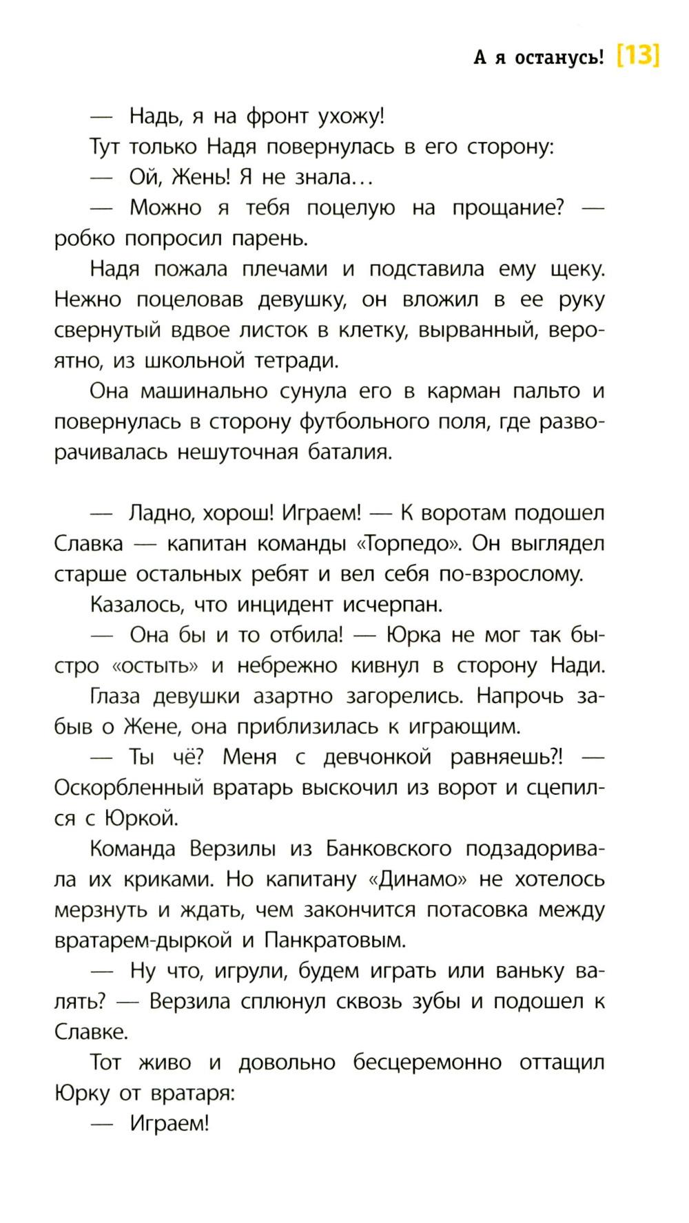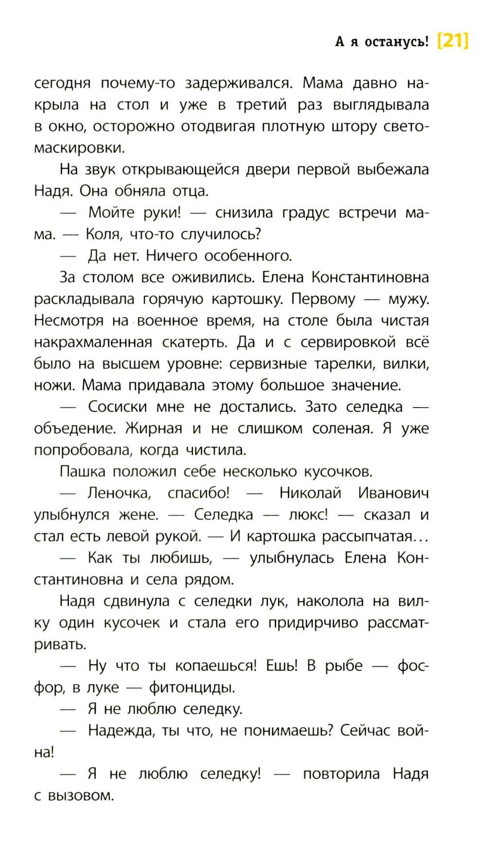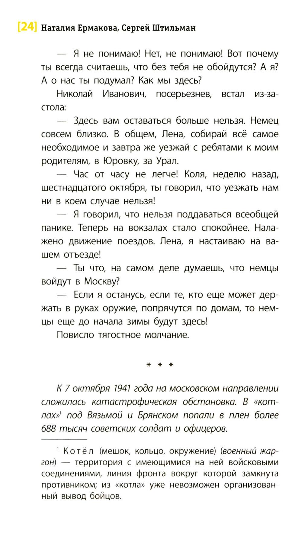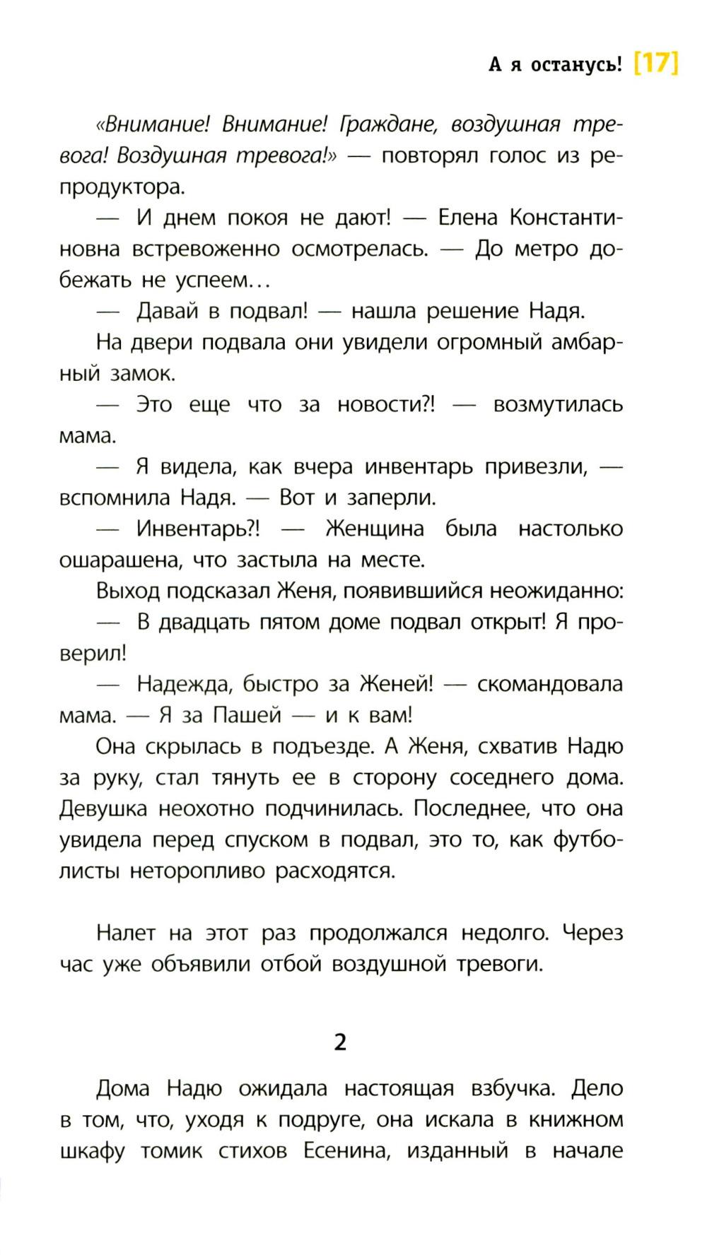 Москва. Октябрь 1941 года. Немцы рвутся к столице. Из города эвакуируются крупные предприятия, многие жители Москвы стараются уехать в глубокий тыл. Собирается в эвакуацию и семья пятнадцатилетней Нади Елисеевой, но девушка решает остаться… из-за соседского паренька Юрки Панкратова, в которого она влюблена. Теперь ей самой придется решать множество проблем: устраиваться на работу, налаживать свой быт в сложных условиях военного времени, заботиться о маленькой сестренке Юрки и его старой бабушке. Провожать его на фронт. Какой была Москва в военное время? Какими были будни и праздники москвичей? Книга основана на реальных событиях.| Издательство | Детская литература |