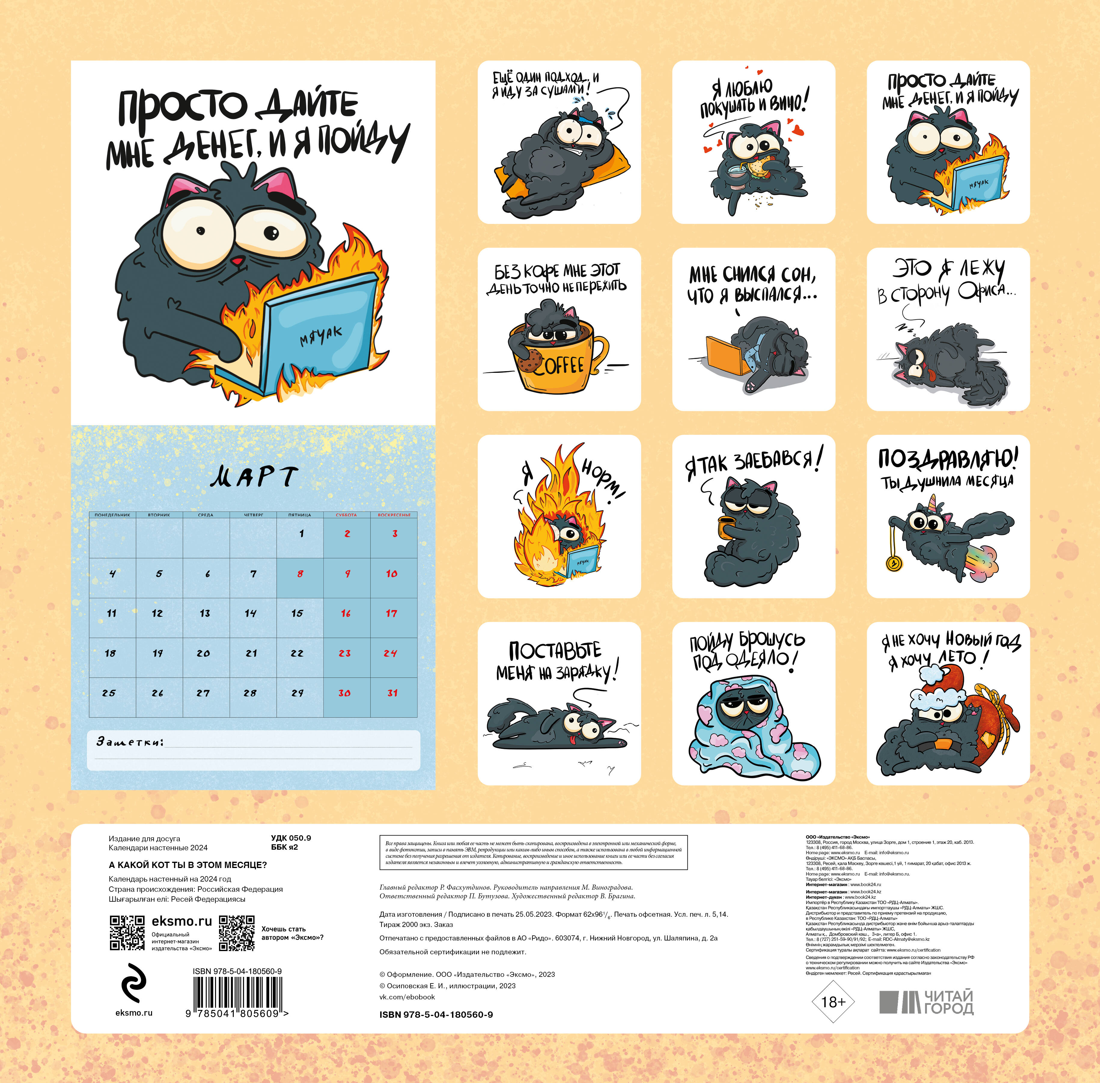 Аннотация: А какой кот ты в этом месяце? Календарь настенный на 2024 год