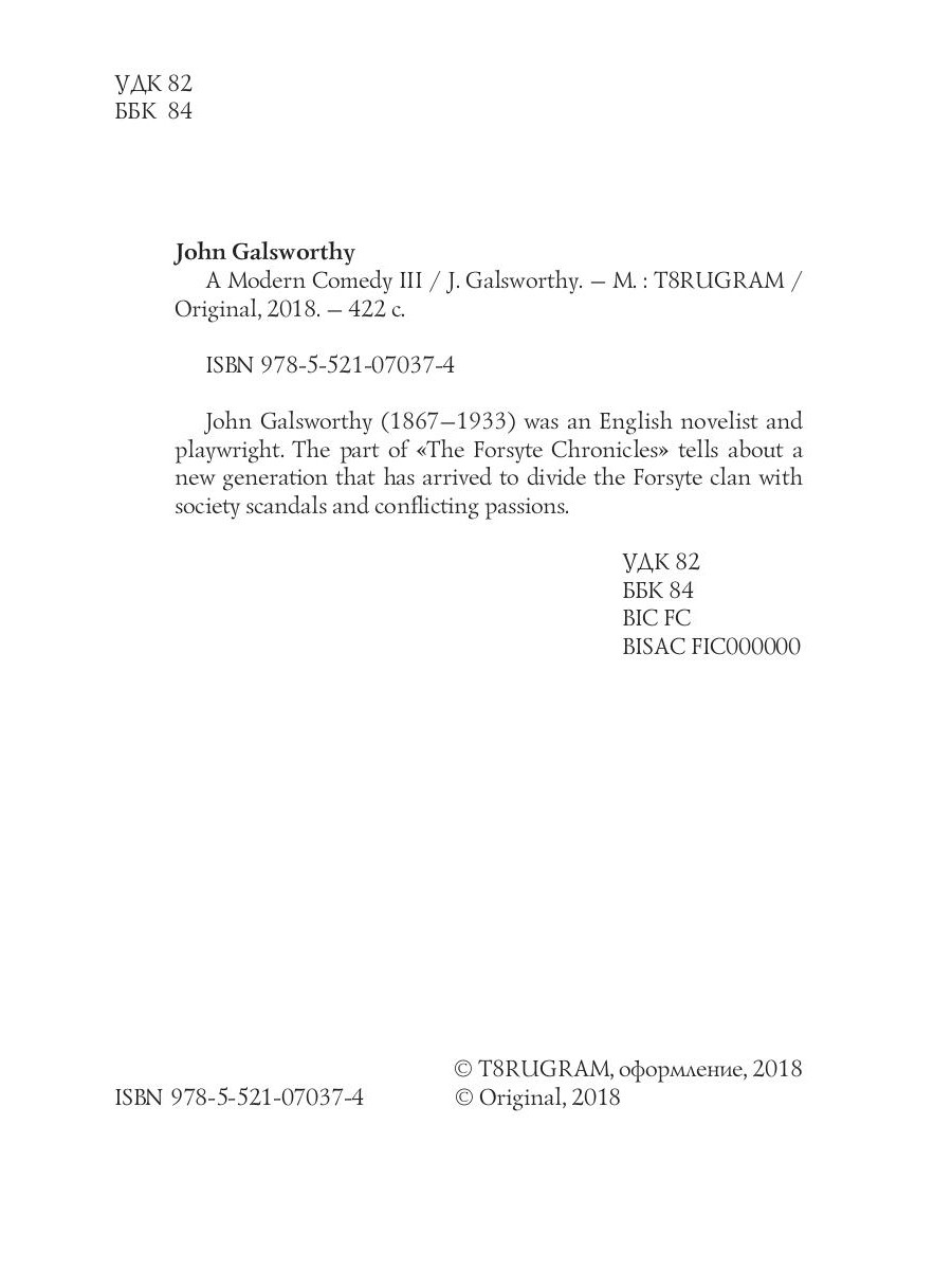 John Galsworthy (1867-1933) was an English novelist and playwright. The part of «The Forsyte Chronicles» tells about a new generation that has arrived to divide the Forsyte clan with society scandals and conflicting passions.| Издательство | Т8 RUGRAM |