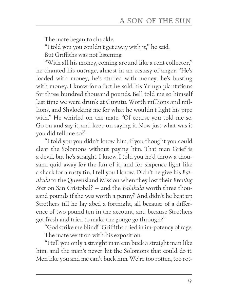 Jack London (1876-1916) was an American novelist, journalist and social activist. Pioneering the genre of magazine fiction and prototyping science fiction, he became one of the first writers, who gained worldwide fame and a large fortune. Set in the South Pacific at the beginning of the twentieth century, "A Son of the Sun" includes of eight wonderful stories like "The Proud Goat of Aloysius Pankburn", "The Devils of Fuatino", and "The Jokers of New Gibbon". Most of them describe the thrilling adventures of Captain David Grief in the exotic South Seas.
