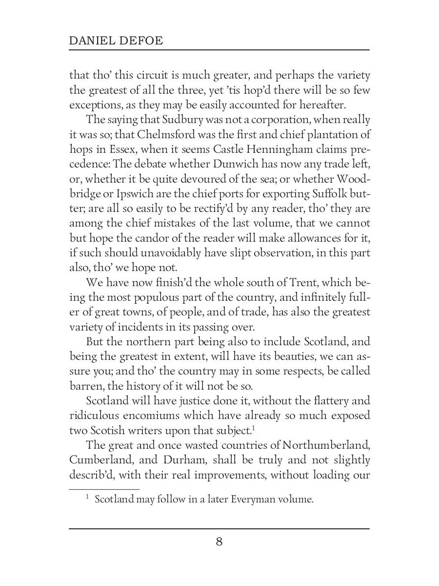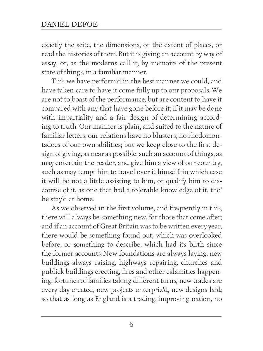 Daniel Defoe was an English trader, writer, pamphleteer and journalist. He is most famous for his novel "Robinson Crusoe", which is second only to the Bible in its number of translations. A Tour Through the Whole Island of Great Britain is an account of author's travels, first published in three volumes between 1724 and 1727. Daniel Defoe brings a lifetime's experience to the tradition of travel writing as a businessman, a soldier, an economic journalist and a spy. This book is not only a beautifully written guide to Britain just before the industrial revolution; it is his deeply imaginative response to a brave new economic world.