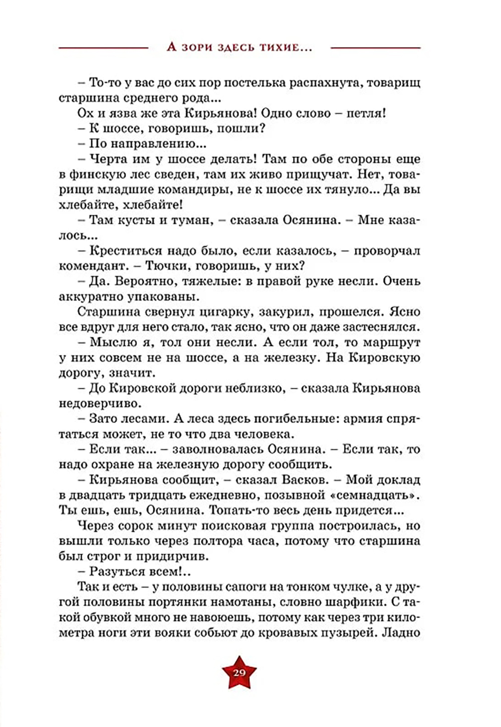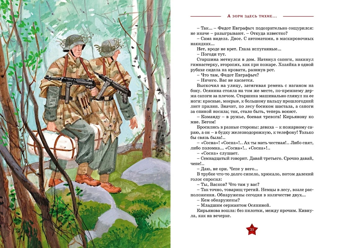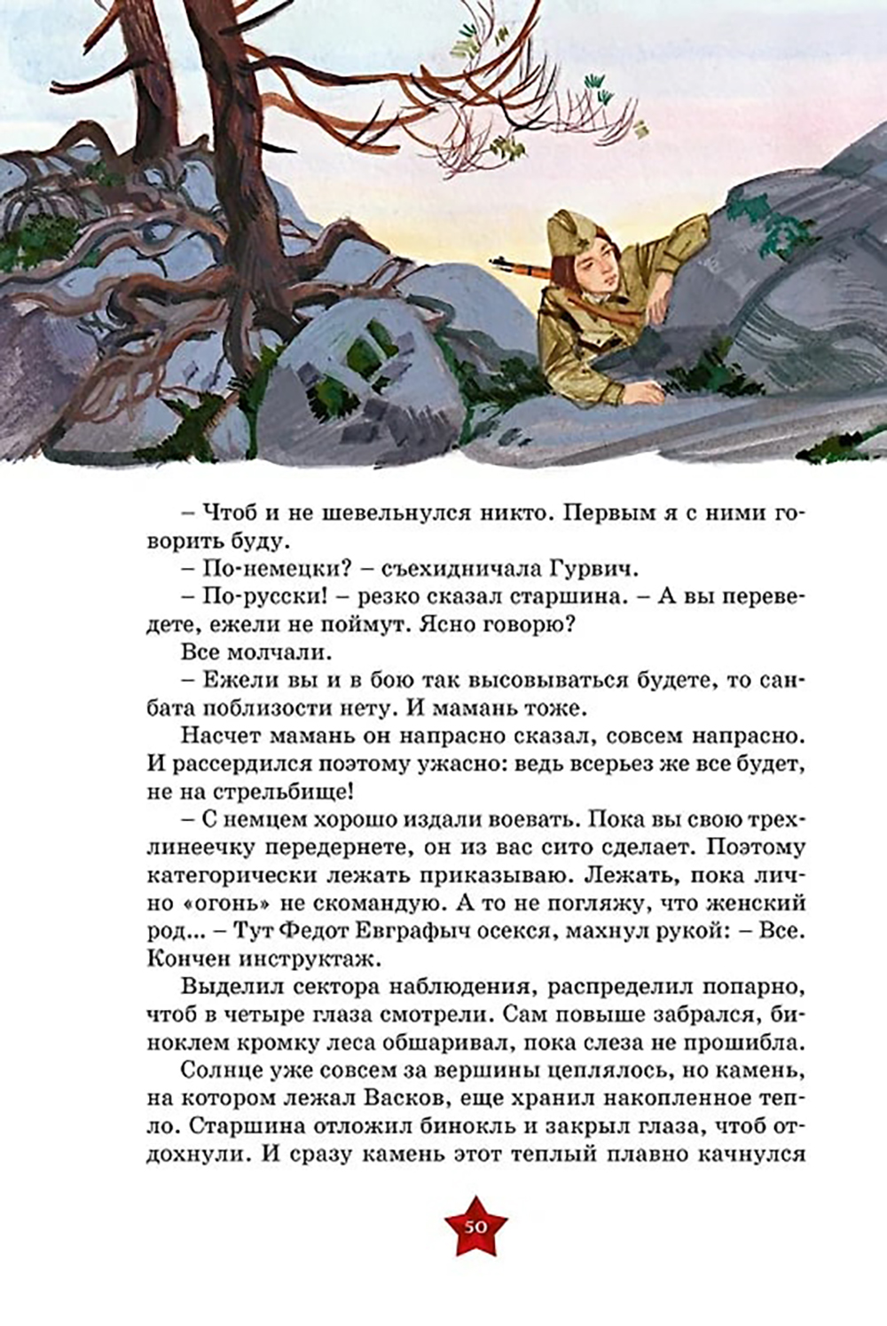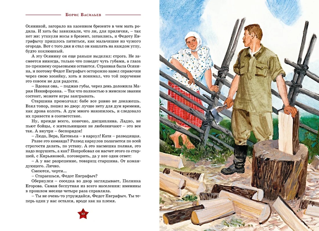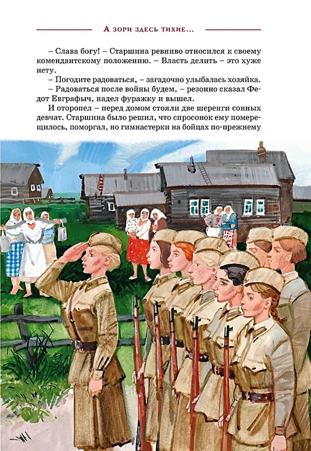 В проникновенной повести «А зори здесь тихие…» Борис Васильев рассказывает о судьбе пяти девушек-зенитчиц и их командира. Когда голубое небо заслоняют свинцовые тучи, слышатся звуки пролетающих вражеских снарядов, героини повести вспоминают мирные дни, легкие и беззаботные. Тогда они не думали об ужасах сражений. Война беспощадная, ей нет дела до нежных девичьих грез. Но всем известно, что в мире нет ничего сильнее женского сердца, стремящегося защитить родных и любимых. Перед ним склоняется даже смерть… Многие поколения, читая повесть Б. Васильева, будут восхищаться героизмом русских женщин, их храбростью и жертвенностью. Их подвиги навсегда останутся в нашей памяти.| Издательство | Махаон |