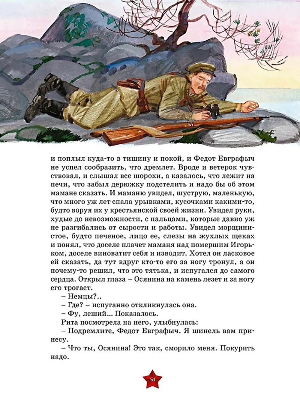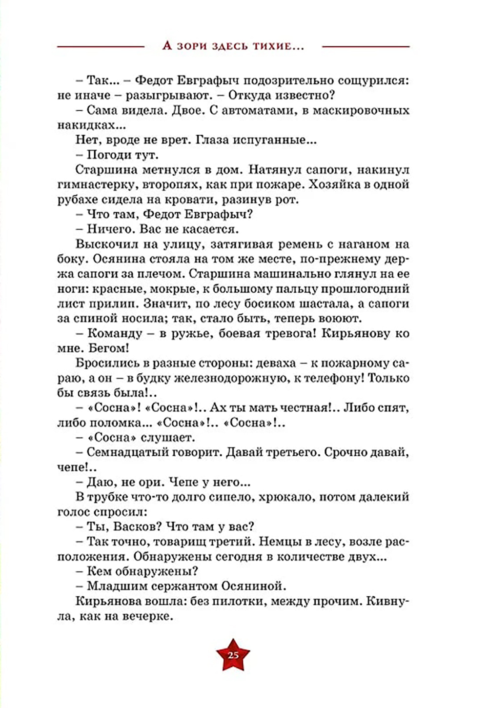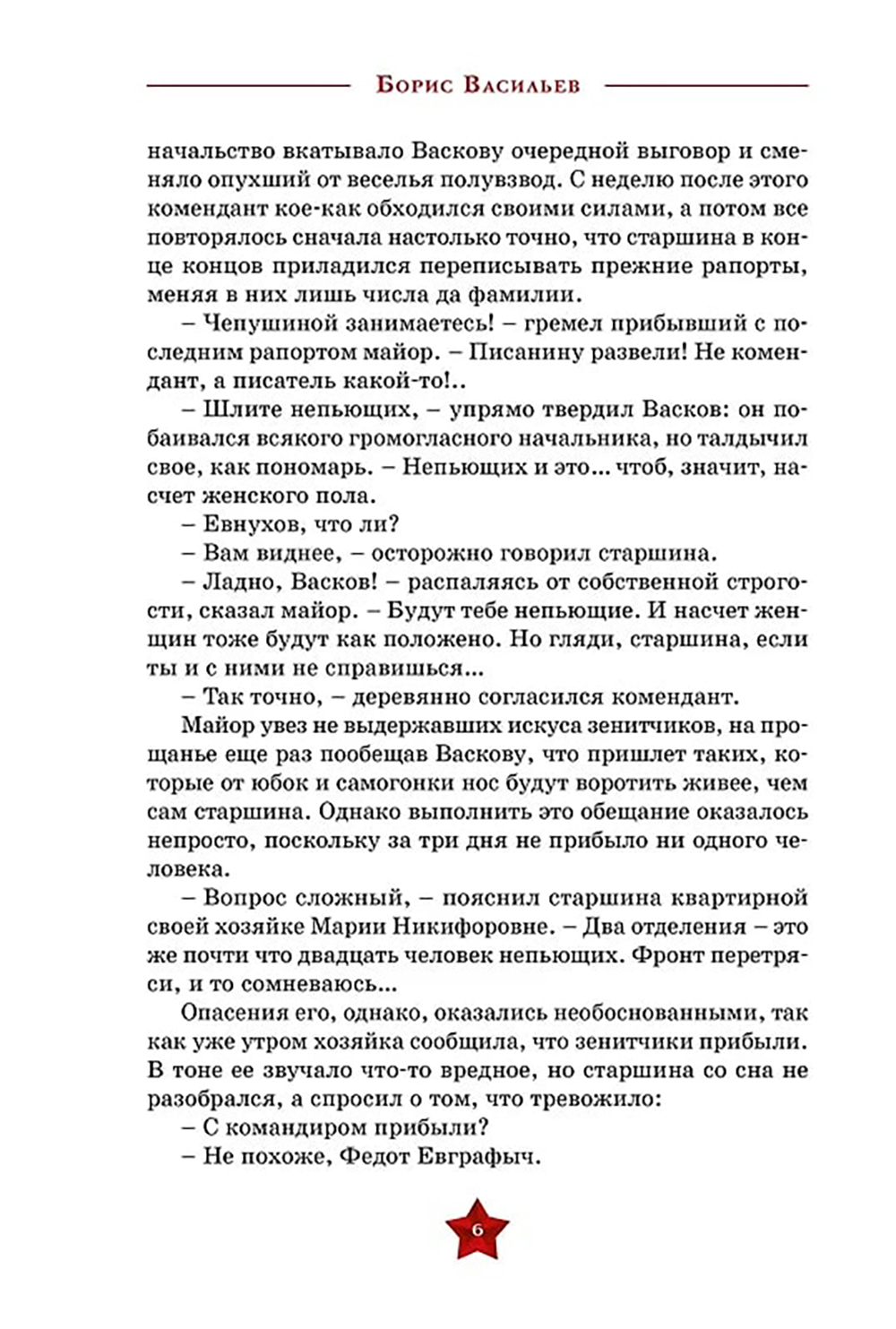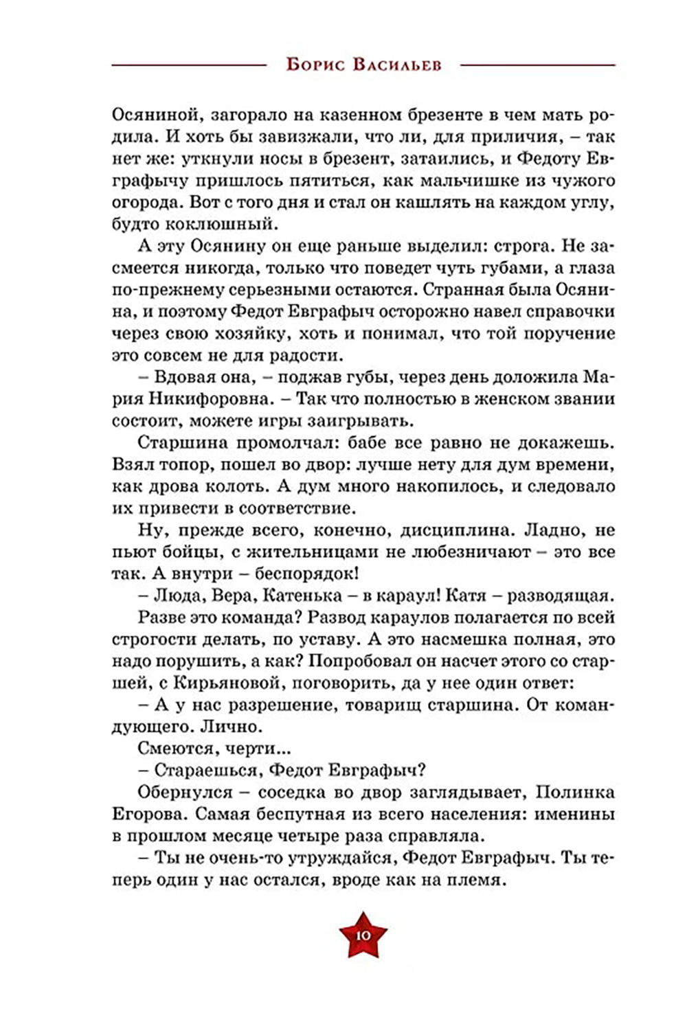 В проникновенной повести «А зори здесь тихие…» Борис Васильев рассказывает о судьбе пяти девушек-зенитчиц и их командира. Когда голубое небо заслоняют свинцовые тучи, слышатся звуки пролетающих вражеских снарядов, героини повести вспоминают мирные дни, легкие и беззаботные. Тогда они не думали об ужасах сражений. Война беспощадная, ей нет дела до нежных девичьих грез. Но всем известно, что в мире нет ничего сильнее женского сердца, стремящегося защитить родных и любимых. Перед ним склоняется даже смерть… Многие поколения, читая повесть Б. Васильева, будут восхищаться героизмом русских женщин, их храбростью и жертвенностью. Их подвиги навсегда останутся в нашей памяти.| Издательство | Махаон |