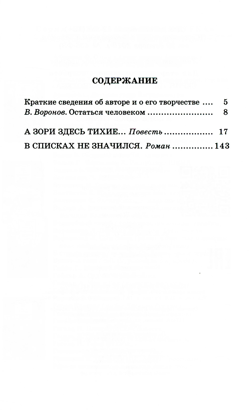 Аннотация: А зори здесь тихие…: повесть; В списках не значился: роман