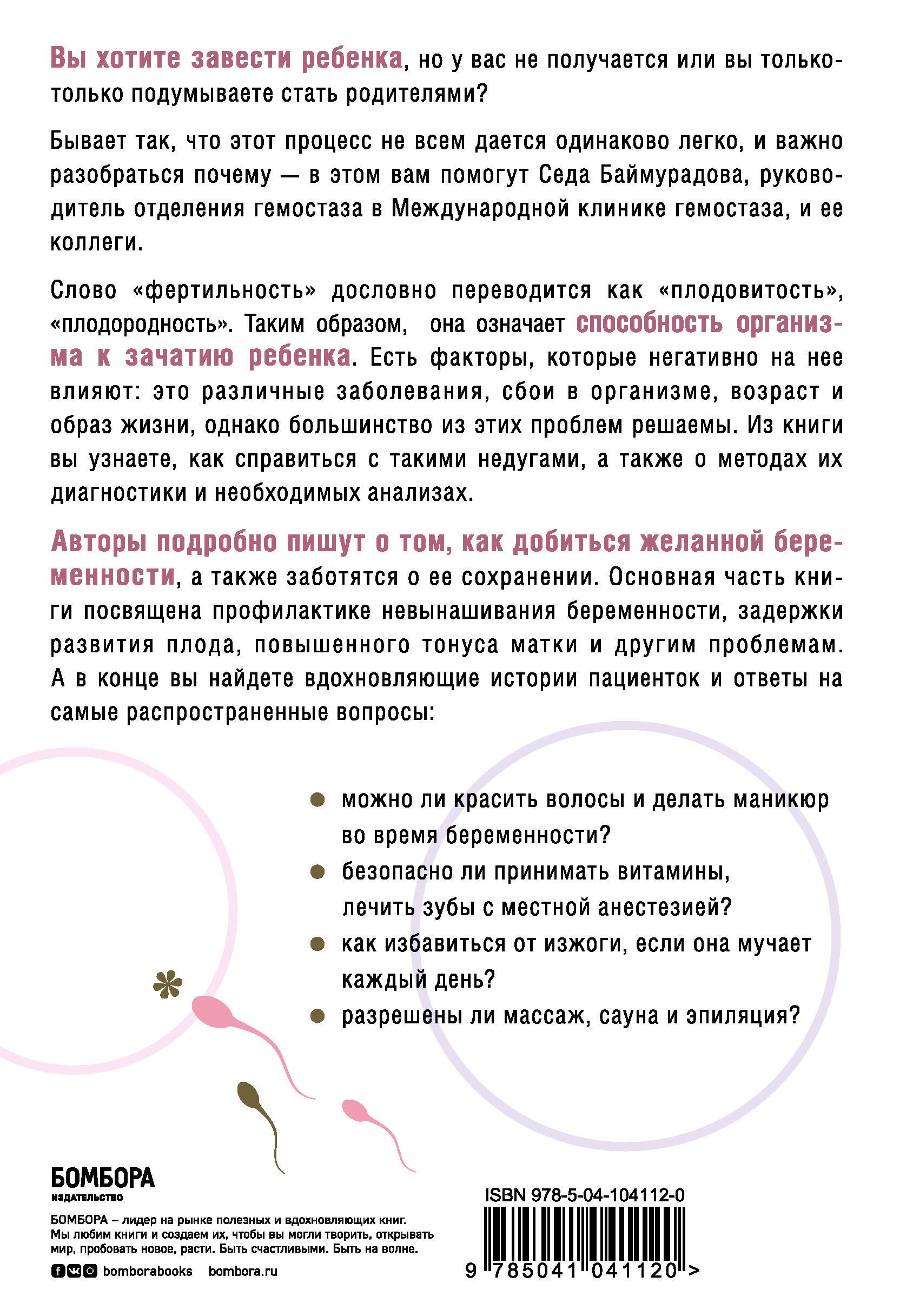У каждой женщины есть шанс стать мамой, ведь достижения современной медицины позволяют анализировать наши репродуктивные возможности и, что самое главное, сохранять их. Фертильность - это наша возможность продолжать род, выносить и родить здорового ребенка. К сожалению, у многих семейных пар не получается долго забеременеть или они терпят множество неудач. Автор книги, Седа Баймурадова, д.м.н., акушер-гинеколог, гемостазиолог (основное направление ее работы - невынашивание), вместе со своими коллегами рассказывает нам всё, что нужно знать о фертильности, необходимых обследованиях и последующем лечении.| Издательство | ООО "Издательство "Эксмо" |