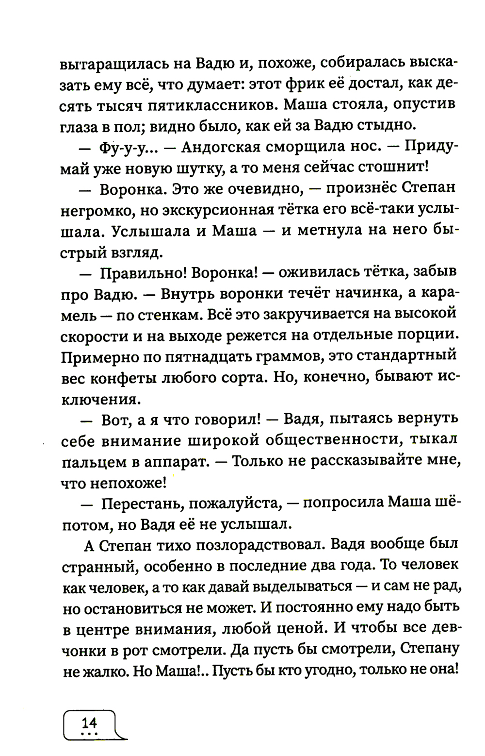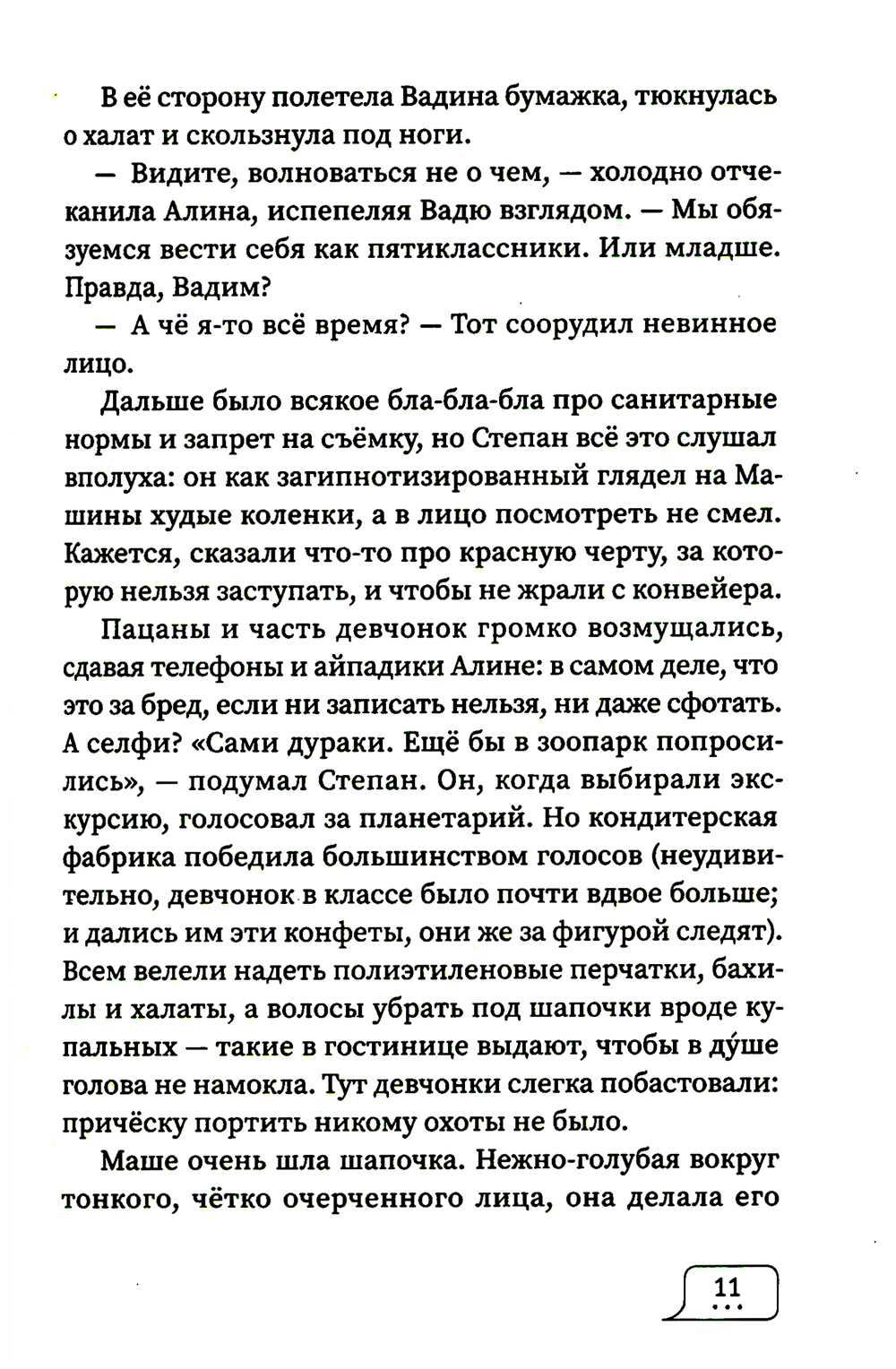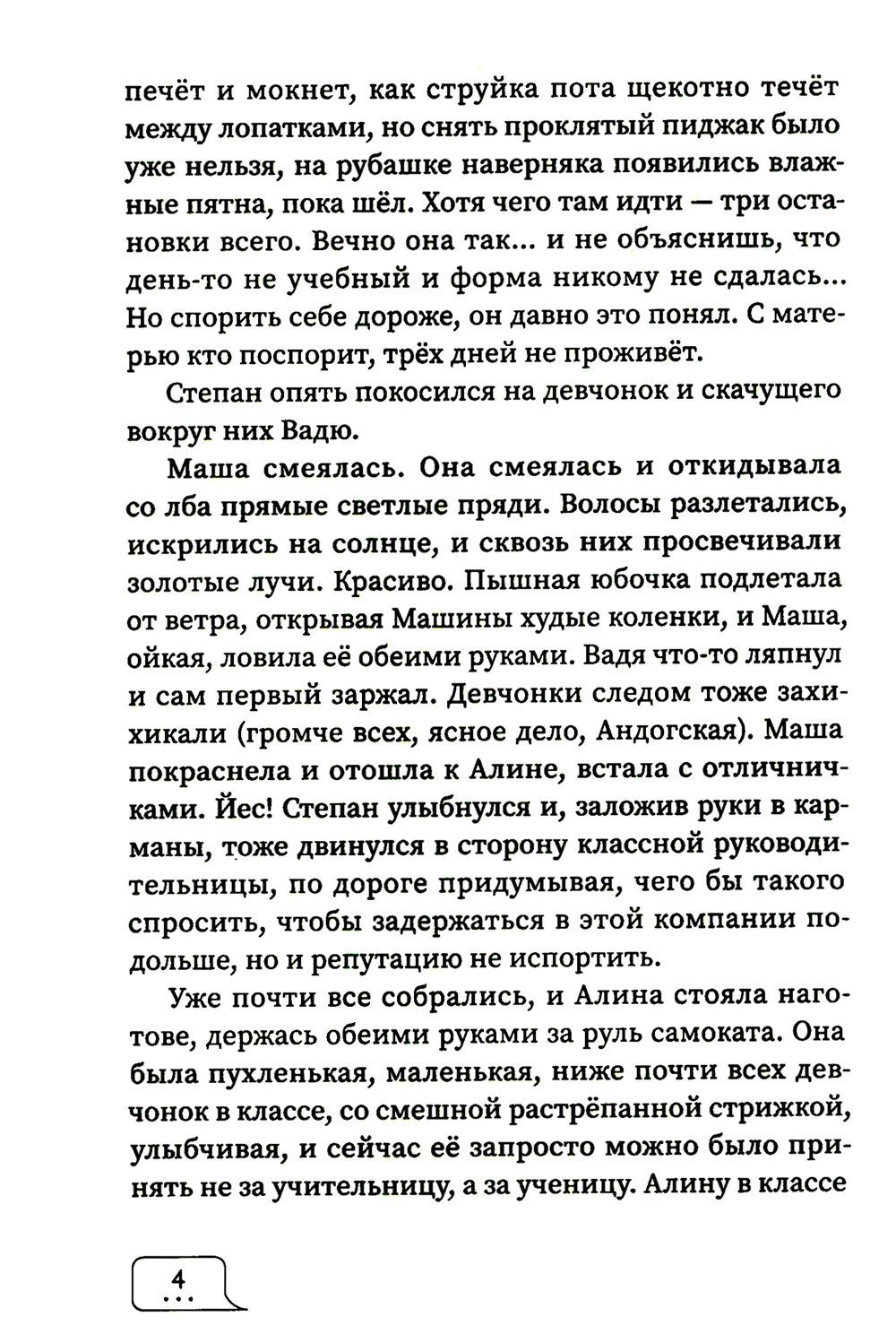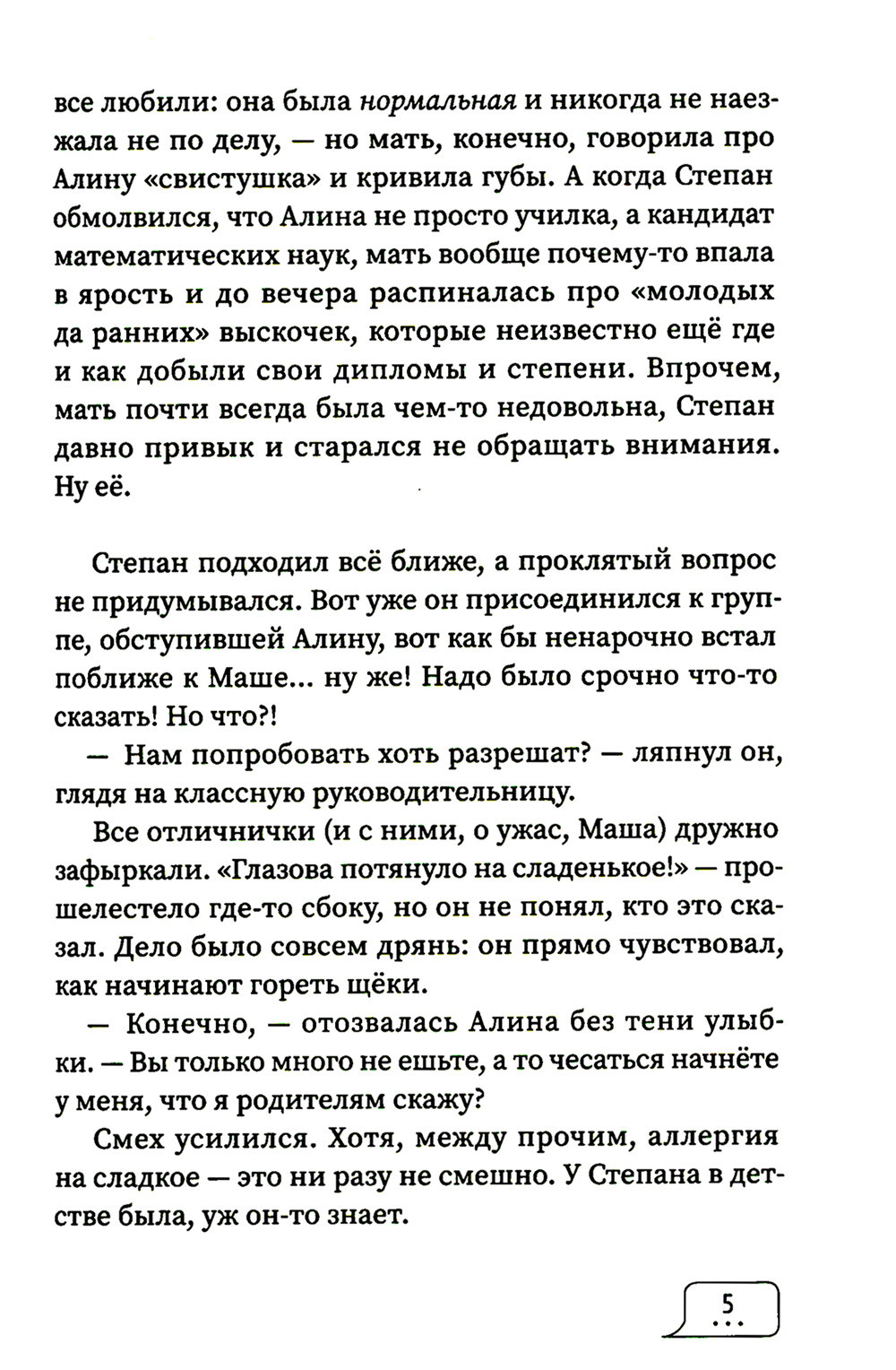 Последняя учебная четверть, экскурсия на кондитерскую фабрику, возможность поближе познакомиться с одноклассницей Машей... Отличный весенний день омрачился для семиклассника Степана скандалом с мамой. Повод ничтожный: он забыл взять разрешение на самостоятельное возвращение домой и не услышал её звонков. Да и скандал далеко не первый... Более того, Степан даже знает, когда и в каких выражениях нужно просить прощения. Только вот в этот раз семиклассник не готов идти на уступки. А мама не готова услышать сына. Она уверена, что всегда права и лучше знает, что делать. Хватит ли им сил и мудрости, чтобы понять друг друга и наладить отношения? Виктория Лебедева - поэт, прозаик и литературный редактор. Александр Турханов - прозаик, музыкант и педагог. Они пишут как в соавторстве, так и самостоятельно. Оба стали лауреатами Международного конкурса имени С. В. Михалкова.| Издательство | Пять четвертей |