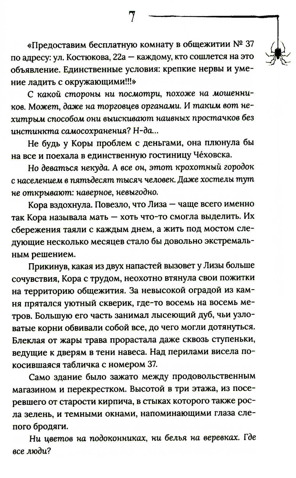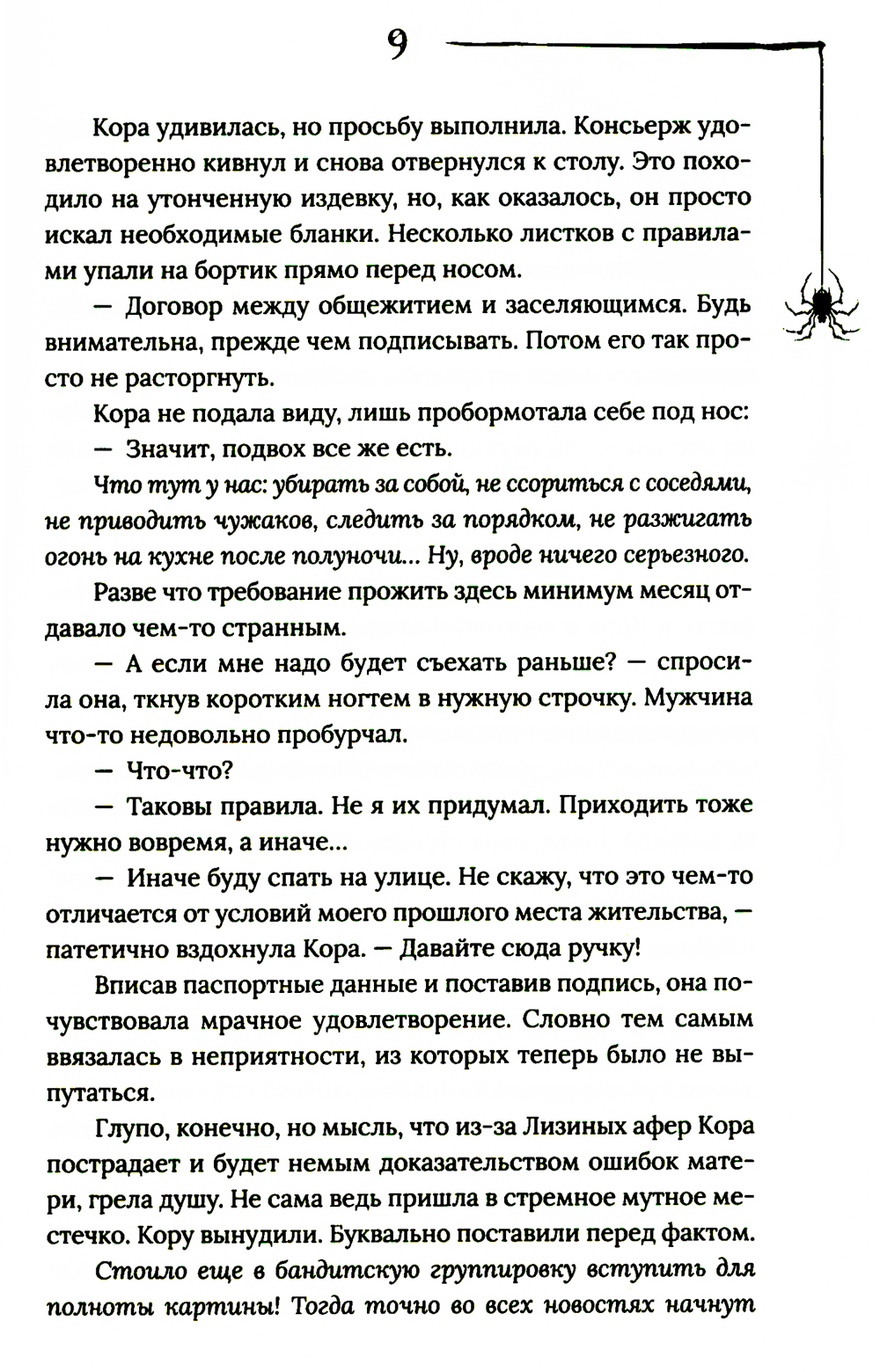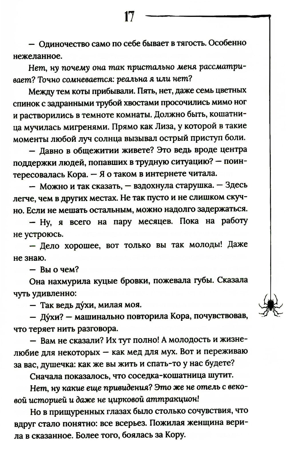 Что делать, если осталась одна в чужом городе, а у тебя ни денег, ни работы, ни даже места для ночлега? Конечно же, откликнуться на подозрительное объявление и заселиться в общежитие, в котором, по слухам, обитают привидения! Таинственный дом, оживающий после полуночи. Жестокие шутки со стороны соседей, ночные кошмары и шепот, приказывающий сгинуть, - вот что ожидало Кору Сонину. Плакать бесполезно, бежать - невозможно. Девушке остается попытаться разгадать загадки этого места, научиться защищать себя и постараться выжить. Ведь тьма затаилась поблизости и выжидает момента, чтобы напасть.