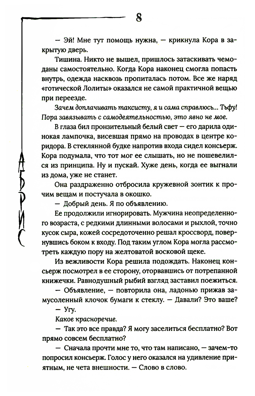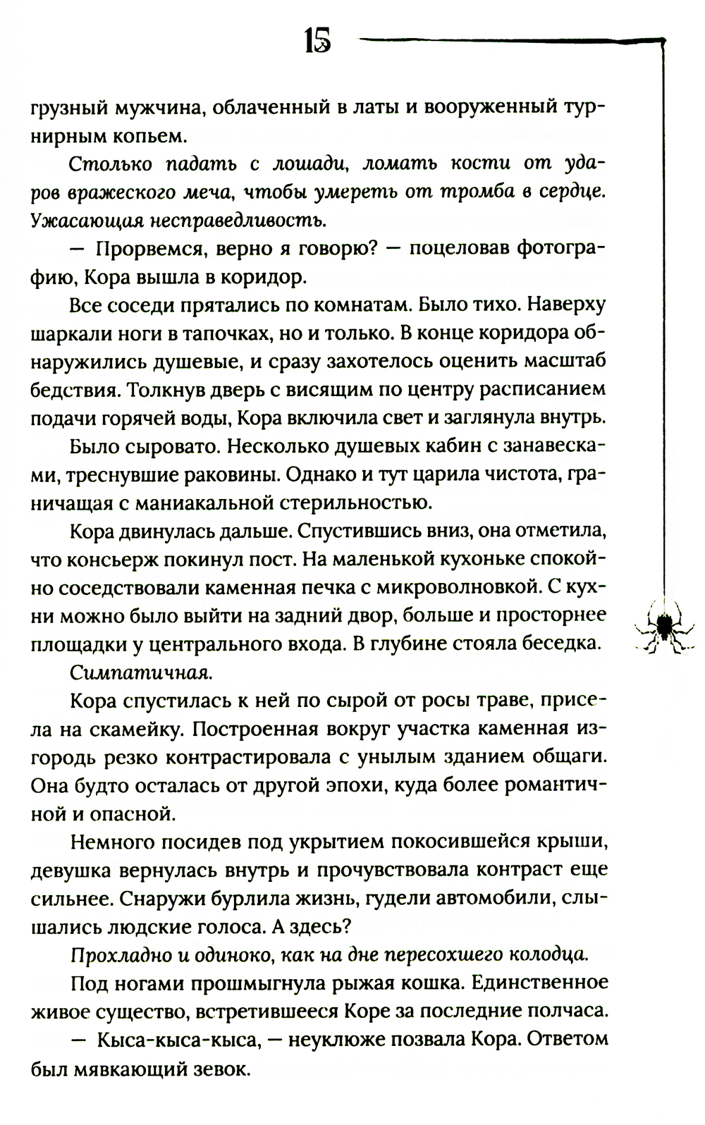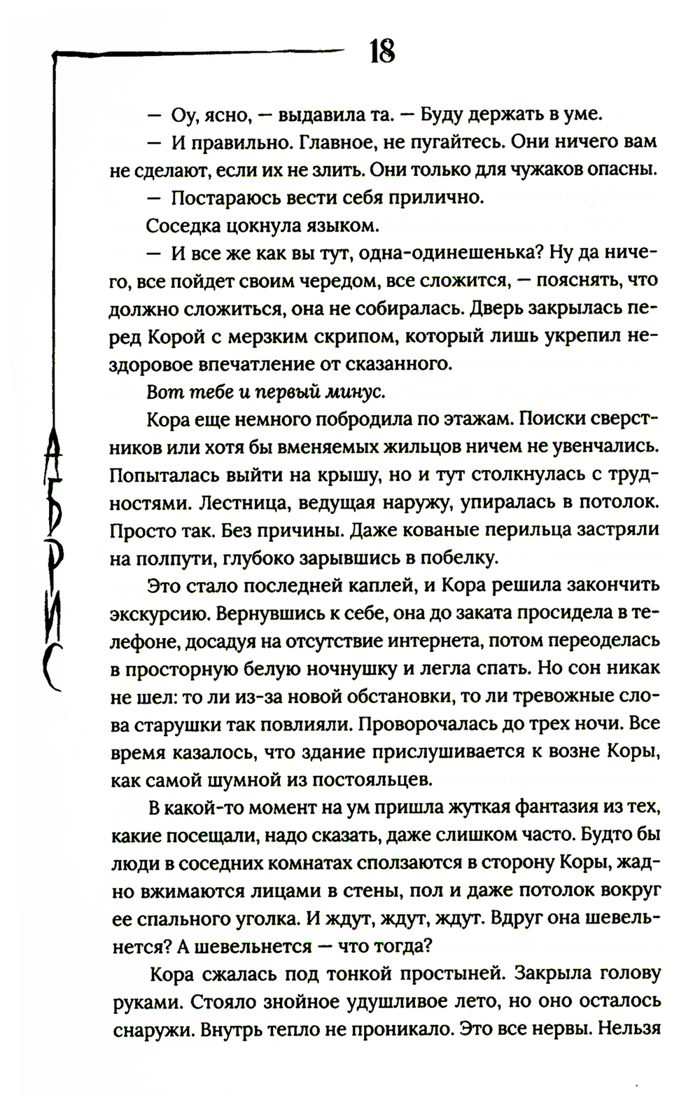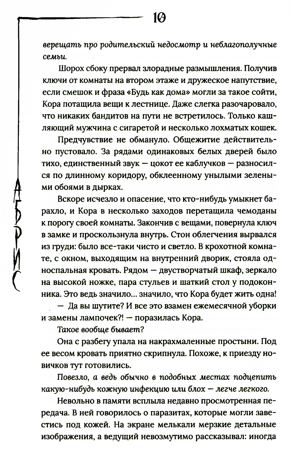 Что делать, если осталась одна в чужом городе, а у тебя ни денег, ни работы, ни даже места для ночлега? Конечно же, откликнуться на подозрительное объявление и заселиться в общежитие, в котором, по слухам, обитают привидения! Таинственный дом, оживающий после полуночи. Жестокие шутки со стороны соседей, ночные кошмары и шепот, приказывающий сгинуть, - вот что ожидало Кору Сонину. Плакать бесполезно, бежать - невозможно. Девушке остается попытаться разгадать загадки этого места, научиться защищать себя и постараться выжить. Ведь тьма затаилась поблизости и выжидает момента, чтобы напасть.