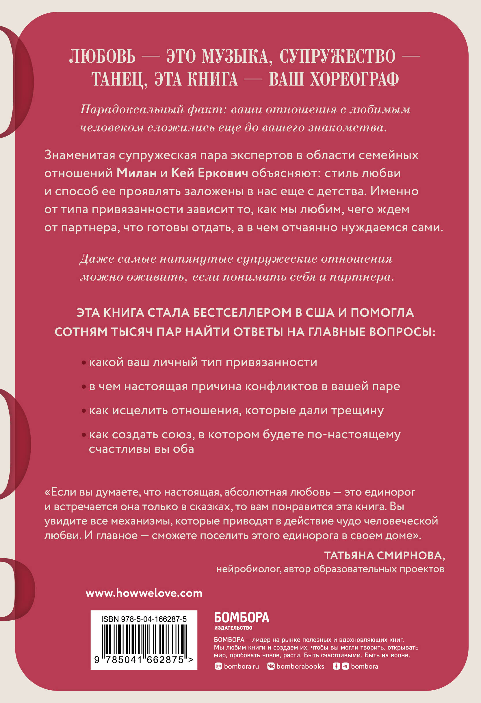 Парадоксальный факт: ваши отношения с любимым человеком сложились еще до вашего знакомства. Знаменитая супружеская пара экспертов в области семейных отношений Милан и Кей Еркович объясняют: стиль любви и способ ее проявлять заложены в нас еще с детства. Именно от типа привязанности зависит то, как мы любим, чего ждем от партнера, что готовы отдать, а в чем отчаянно нуждаемся сами. Даже самые натянутые супружеские отношения можно оживить, если понимать себя и партнера. Эта книга стала бестселлером в США и помогла сотням тысяч пар найти ответы на главные вопросы: - какой ваш личный тип привязанности; - в чем настоящая причина конфликтов в вашей паре; - как исцелить отношения, которые дали трещину; - как создать союз, в котором будете по-настоящему счастливы вы оба. «Если вы думаете, что настоящая, абсолютная любовь - это единорог и встречается она только в сказках, то вам понравится эта книга. Вы увидите все механизмы, которые приводят в действие чудо человеческой любви. И, главное - сможете поселить этого единорога в своем доме». - Смирнова Татьяна Александровна, нейробиолог, андрагог, автор образовательных проектов| Издательство | ООО "Издательство "Эксмо" |