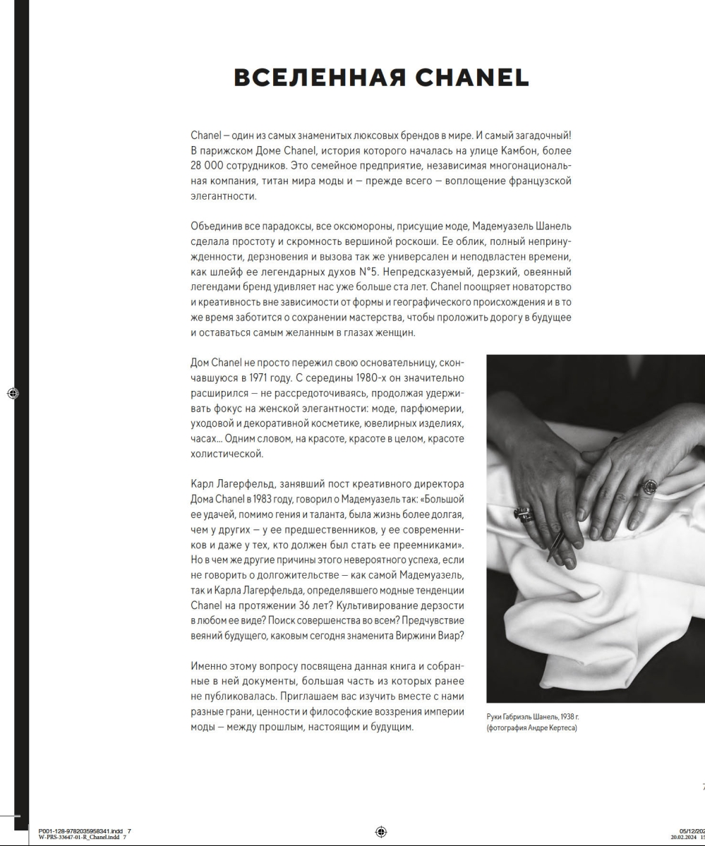 Chanel - один из самых знаменитых люксовых брендов в мире. И самый загадочный! Его средоточие находится в Париже на улице Камбон, и он неразрывно связан с именем Габриэль Шанель - женщины, совершившей революцию в мире женской моды. Основательница Дома Chanel, непринужденная, смелая и нетерпеливая, сделала простоту и скромность вершиной роскоши. Непредсказуемый и дерзкий бренд уже больше ста лет удивляет нас своими невероятными дефиле и творениями, среди которых мифический аромат N°5, сумочка 2.55, ювелирные украшения тончайшей работы, ультрасовременные косметические средства... Он создает свою легенду, сохраняя уникальное мастерство, наследие прошлого. С этой книгой, в которой собрано более 300 иллюстраций и факсимиле, вы совершите незабываемое путешествие во вселенную Дома Chanel и познакомитесь с его историей - от Габриэль Шанель до Карла Лагерфельда и Виржини Виар.| Издательство | КоЛибри |
