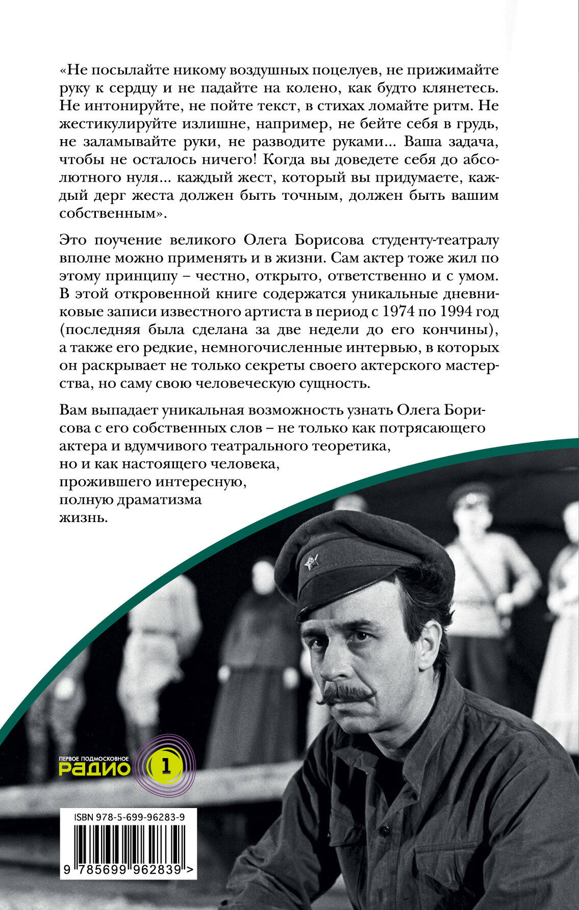 "Не посылайте никому воздушных поцелуев, не прижимайте руку к сердцу и не падайте на колено, как будто клянетесь. Не интонируйте, не пойте текст, в стихах ломайте ритм. Не жестикулируйте излишне, например, не бейте себя в грудь, не заламывайте руки, не разводите руками… Ваша задача, чтобы не осталось ничего! Когда вы доведете себя до абсолютного нуля… каждый жест, который вы придумаете, каждый дерг жеста должен быть точным, должен быть вашим собственным". Это поучение великого Олега Борисова студенту-театралу вполне можно применять и в жизни. Сам актер тоже жил по этому принципу - честно, открыто, ответственно и с умом. В этой откровенной книге содержатся уникальные дневниковые записи известного артиста в период с 1974 по 1994 (последняя была сделана за две недели до его кончины), а также его редкие, немногочисленные интервью. Вам выпадает уникальная возможность узнать Олега Борисова с его собственных слов - не только как потрясающего актера и вдумчивого театрального теоретика, но и как настоящего человека, прожившего интересную, полную драматизма жизнь.| Издательство | ООО "Издательство "Эксмо" |