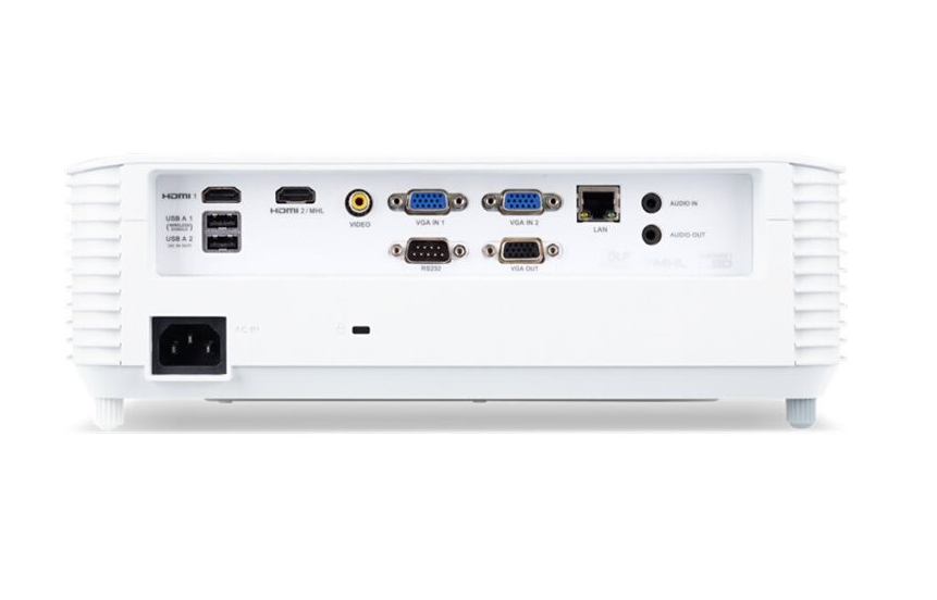 Подключения: 1x HDMI, 1x VGA (D-Sub), 1x композитное видео (RCA), 1x аудио вход (3,5 мм), 1x аудио выход (3,5 мм), 1x RS232