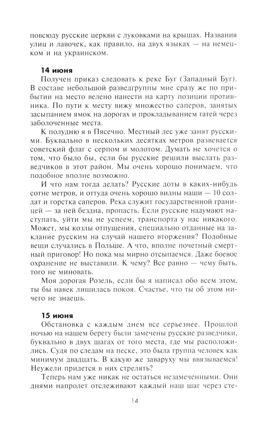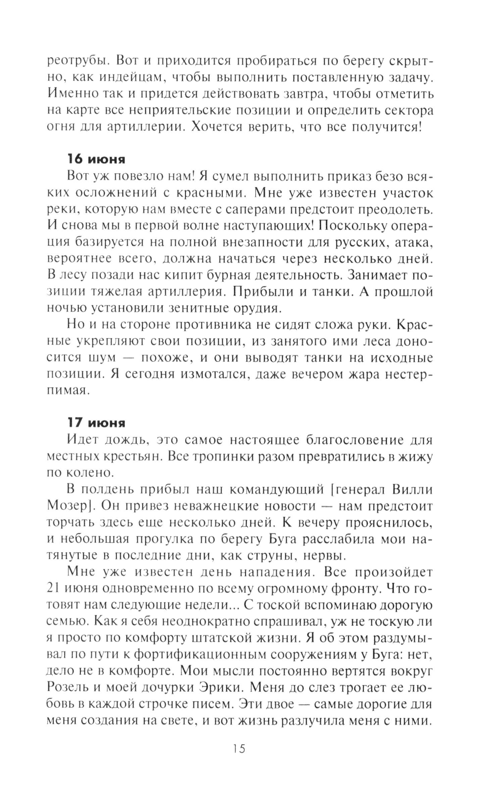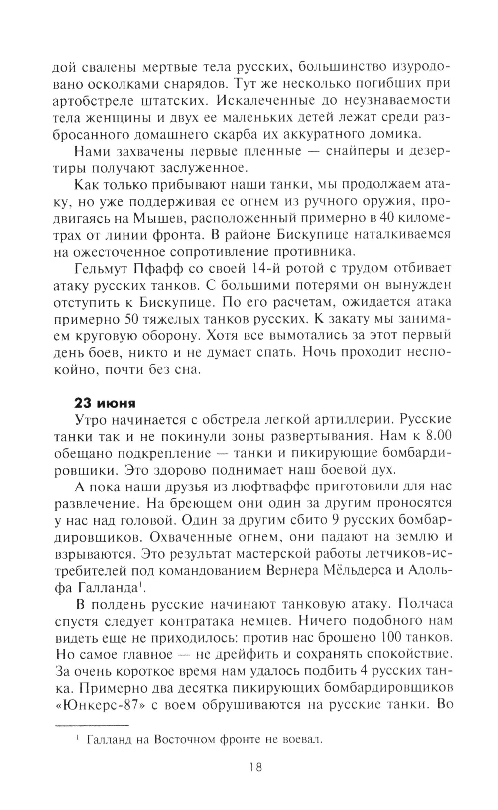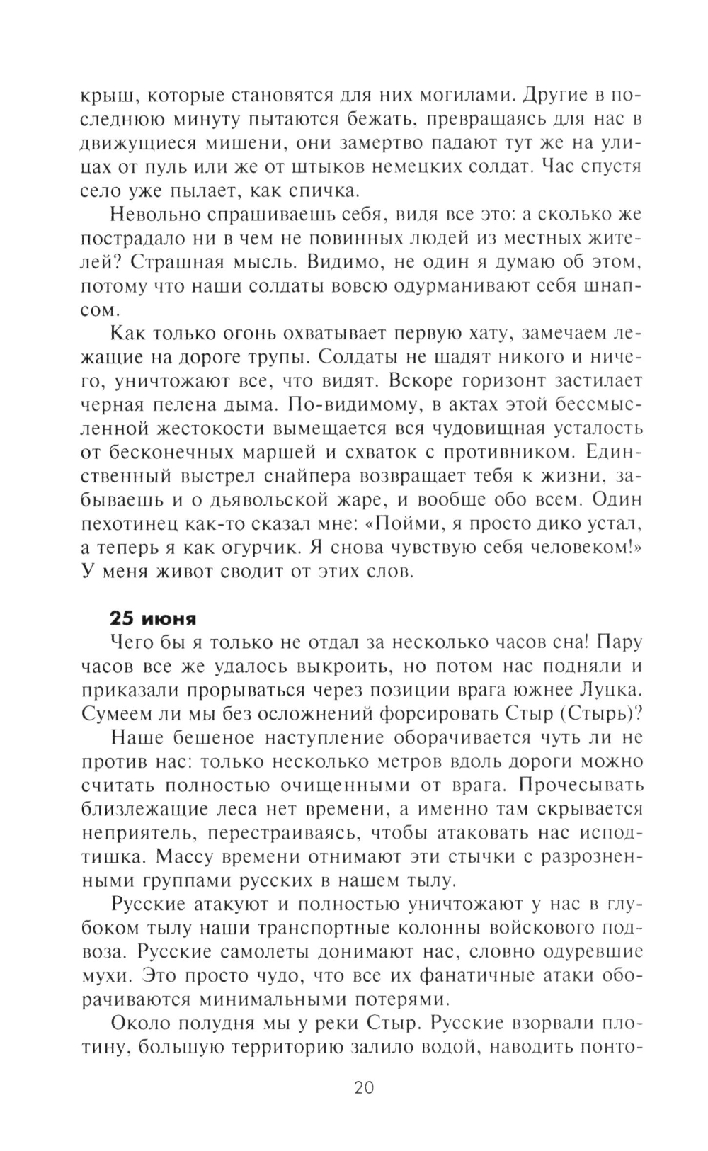 Ефрейтор, а позднее фельдфебель Ганс Рот начал вести свой дневник весной 1941 г., когда 299-я дивизия, в которой он воевал, в составе 6-й армии, готовилась к нападению на Советский Союз. В соответствии с планом операции «Барбаросса» дивизия в ходе упорных боев продвигалась южнее Припятских болот. В конце того же года подразделение Рота участвовало в замыкании кольца окружения вокруг Киева, а впоследствии в ожесточенных боях под Сталинградом, в боях за Харьков, Воронеж и Орел. Почти ежедневно автор без прикрас описывал все, что видел своими глазами: кровопролитные бои и жестокую расправу над населением на оккупированных территориях, суровый солдатский быт и мечты о возвращении к мирной жизни. В 1944 г. фельдфебель Ганс Рот пропал без вести в Витебском котле, но сохранились три дневника с описанием боевых действий, в которых он принимал участие. Лишь много лет спустя их обнаружили внуки Рота и осуществили издание записок своего деда.| Издательство | Центрполиграф |