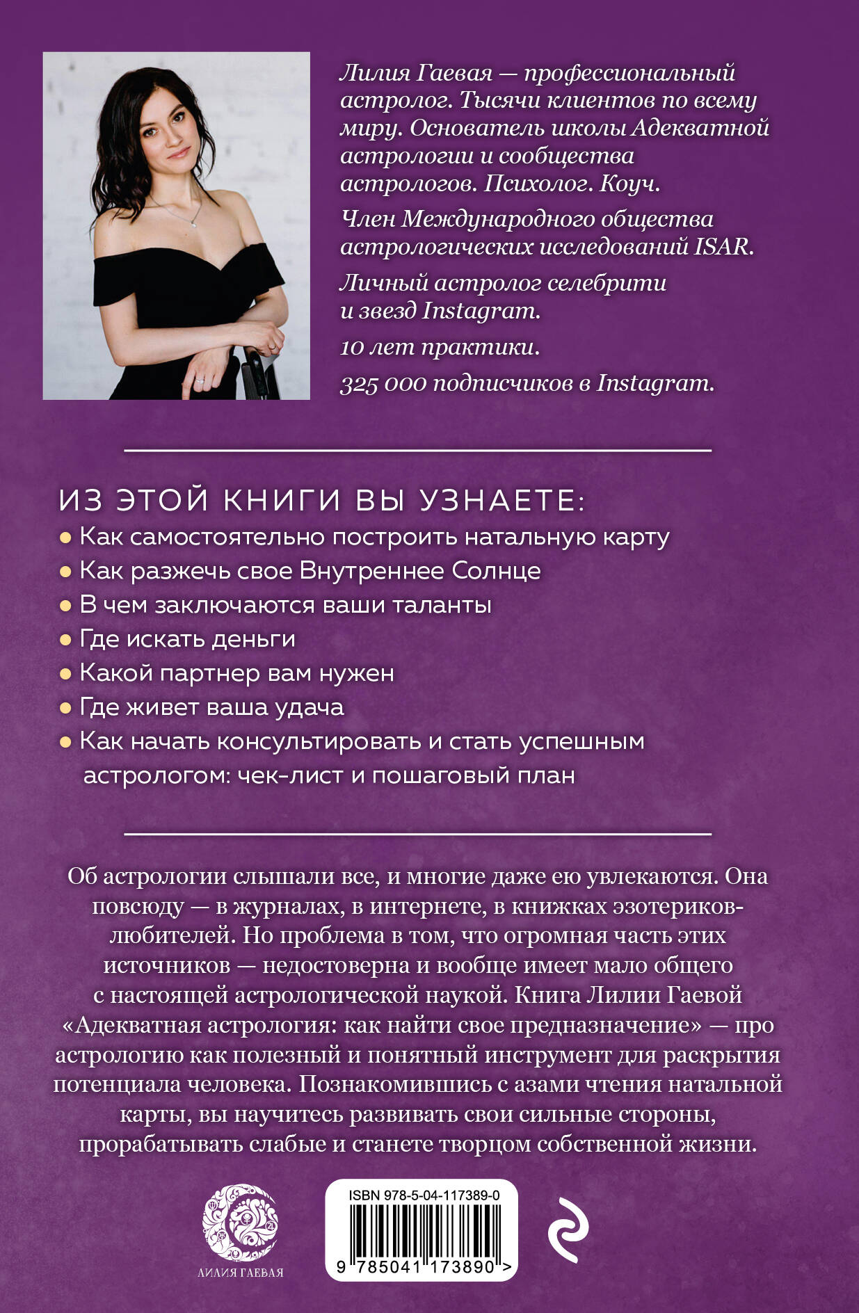 Книга известного астролога, психолога, основателя школы Адекватной астрологии - Лилии Гаевой для всех, кто интересуется астрологией, хочет начать консультировать и стать успешным астрологом. Эта книга - полезный и понятный инструмент для раскрытия потенциала человека. Познакомившись с азами чтения натальной карты, вы научитесь развивать свои сильные стороны, прорабатывать слабые и станете творцом своей собственной жизни. Вы поймете, в чем заключаются ваши таланты, где живет ваша удача, где искать деньги, какой партнер вам нужен и многое другое. У Лилии более 325 тысяч подписчиков в Instagram, тысячи учеников и клиентов, среди которых много знаменитостей.| Издательство | ООО "Издательство "Эксмо" |