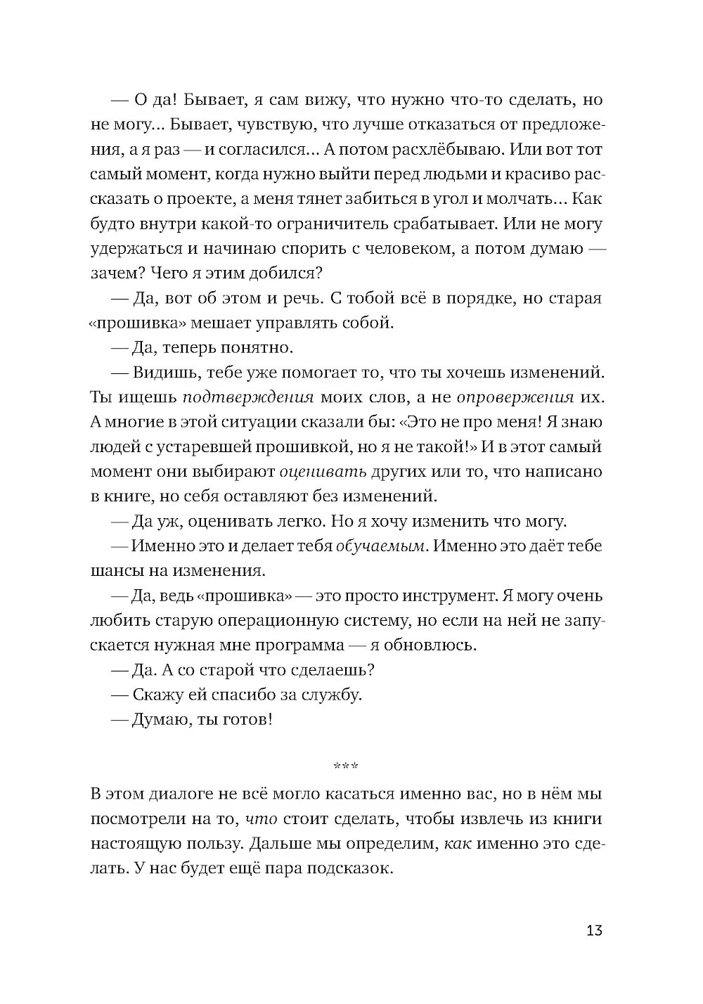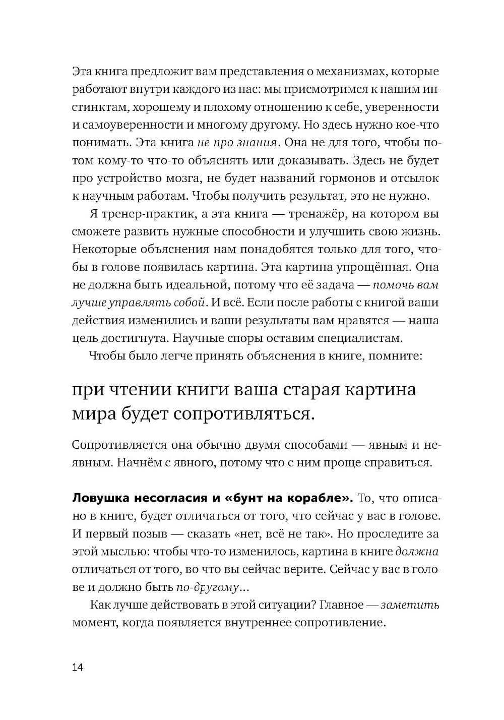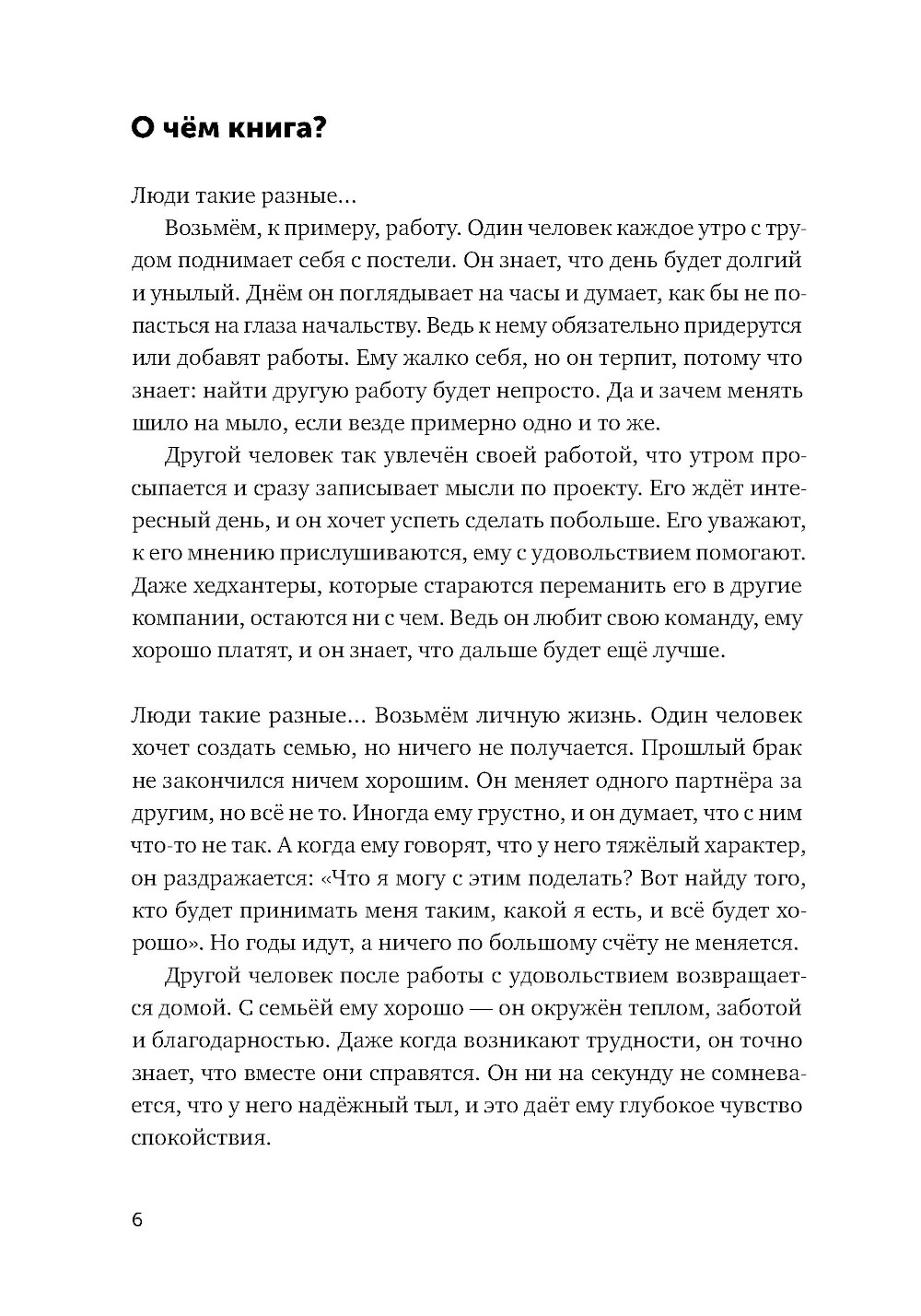 Люди живут и работают очень по-разному. Кто-то справляется лучше, кто-то хуже. Кто-то более счастлив, а кто-то менее. Чем эти люди отличаются? Много чем, но самое главное - тем, как они собой управляют. Ведь в одной и той же ситуации люди: - по-разному понимают, что происходит; - принимают разные решения; - действуют с разным настроем. И результаты у них, естественно, разные. А все эти способности можно развивать. Можно научиться быстро улавливать суть происходящего, делать разумный выбор и настраивать себя на нужный лад. Из этой книги читатель узнает, как развить уверенность в себе и не терять самообладания даже в самых эмоционально заряженных ситуациях; как достигать высоких результатов без насилия над собой; как развить проницательность и эмпатию, чтобы выстраивать эффективные и приятные отношения в личной и деловой жизни.| Издательство | Альпина ПРО |