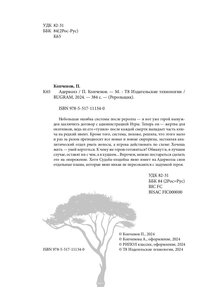 Небольшая ошибка системы после реролла - и вот уже герой вынужден заключить договор с администрацией Игры. Теперь он - жертва для охотников, ведь из его «тушки» после каждой смерти выпадает часть ключа на редкий ивент. Кроме того, система, похоже, решила, что этого мало и раз за разом преподносит все новые и новые сюрпризы, заставляя аналитический отдел рвать волосы, а игрока действовать по схеме: Хочешь жить - умей вертеться. К чему же герою готовиться? Обманут и, в лучшем случае, оставят ни с чем, а в худшем... Впрочем, можно постараться сделать это на опережение. Хотя Судьба-злодейка явно имеет на Адерволза свои отдельные планы, которые явно никак не пересекаются с задумкой героя.| Издательство | Т8 RUGRAM |