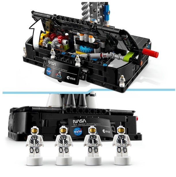 LEGO Technic 42221 NASA Artemis SLS Rocket - большой и образовательный набор, позволяющий собрать детализированную ракету Artemis SLS. Модель оснащена ручным механизмом, который демонстрирует последовательное отделение ступеней: сначала ускорители, затем центральная ступень, и верхняя с капсулой Orion. В комплект входят 4 астронавта‑нанофигурки и информационная табличка для демонстрации модели. Подходит для игры, творчества и изучения инженерных принципов. Рекомендуется детям от 9 лет.