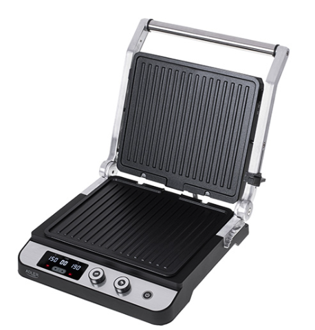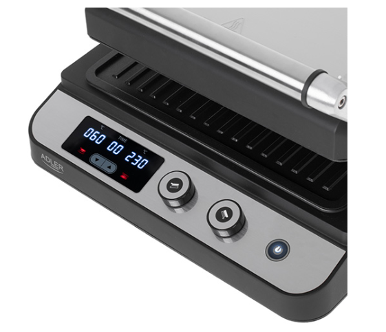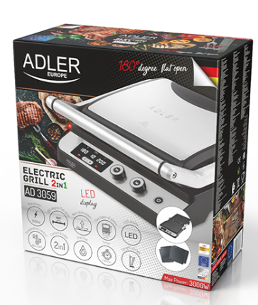 Электрогриль Adler 3059 со светодиодным дисплеем максимальной мощностью 3000 Вт позволяет готовить широкий ассортимент горячих блюд - от поджаренных гамбургеров, стейков, свиной шеи, курицы и другого мяса до овощей и сыров на гриле. Нагревательные пластины защищены тефлоновым покрытием, благодаря которому продукты не пригорают, а последующее мытье занимает всего мгновение. Кроме того, покрытие позволяет готовить на гриле без добавления жира, а отверстие для слива жира делает блюда более полезными. Устройство имеет удобную панель управления со светодиодным дисплеем.