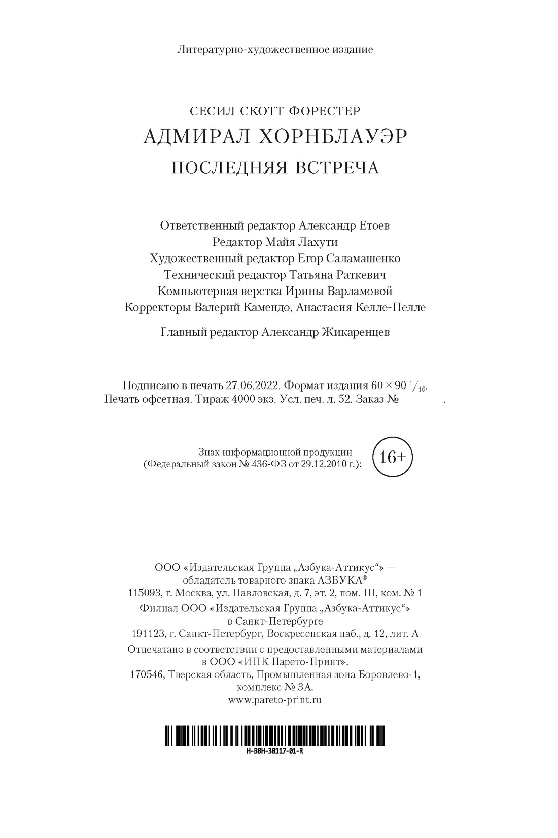 Сага об офицере королевского флота Великобритании Горацио Хорнблауэре, прошедшем славный и трудный путь от простого мичмана до лорда и адмирала, - уникальное явление в мировой историко-авантюрной литературе. Миллионный круг почитателей, бесконечные тиражи, поистине мировое признание, выведшее писателя в классики жанра, кино- и телеверсии с участием таких известных актеров, как Грегори Пек, Кристофер Ли, и других звезд мирового кинематографа. Автор саги, Сесил Скотт Форестер, говорил о своем герое: «Он доставил мне бесчисленных друзей по всему миру. Таможенники читают мою фамилию и пропускают мой багаж, не досматривая. Он свел меня с адмиралами и принцессами, и я благодарен ему, честное слово, хотя и думаю часто, что лучше б ему этого не делать». Не каждому писателю настолько повезло с персонажем. Сага о Горацио Хорнблауэре оставила заметный литературный след. Книжный сериал Бернарда Корнуэлла о стрелке Шарпе создавался под влиянием Форестера. Патрик О'Брайен, отталкиваясь от книг знаменитой саги, написал многотомную эпопею о капитане Обри. Даже Гарри Гаррисон спародировал по-доброму образ героя Форестера в одном из своих рассказов («Капитан Гонарио Харпплейер»). Книга завершает повествование о морских подвигах Горацио Хорнблауэра - личности, которая, по словам Уинстона Черчилля, «вызывает из прошлого великий и суровый образ королевского флота в эпоху его славы».| Издательство | Азбука |