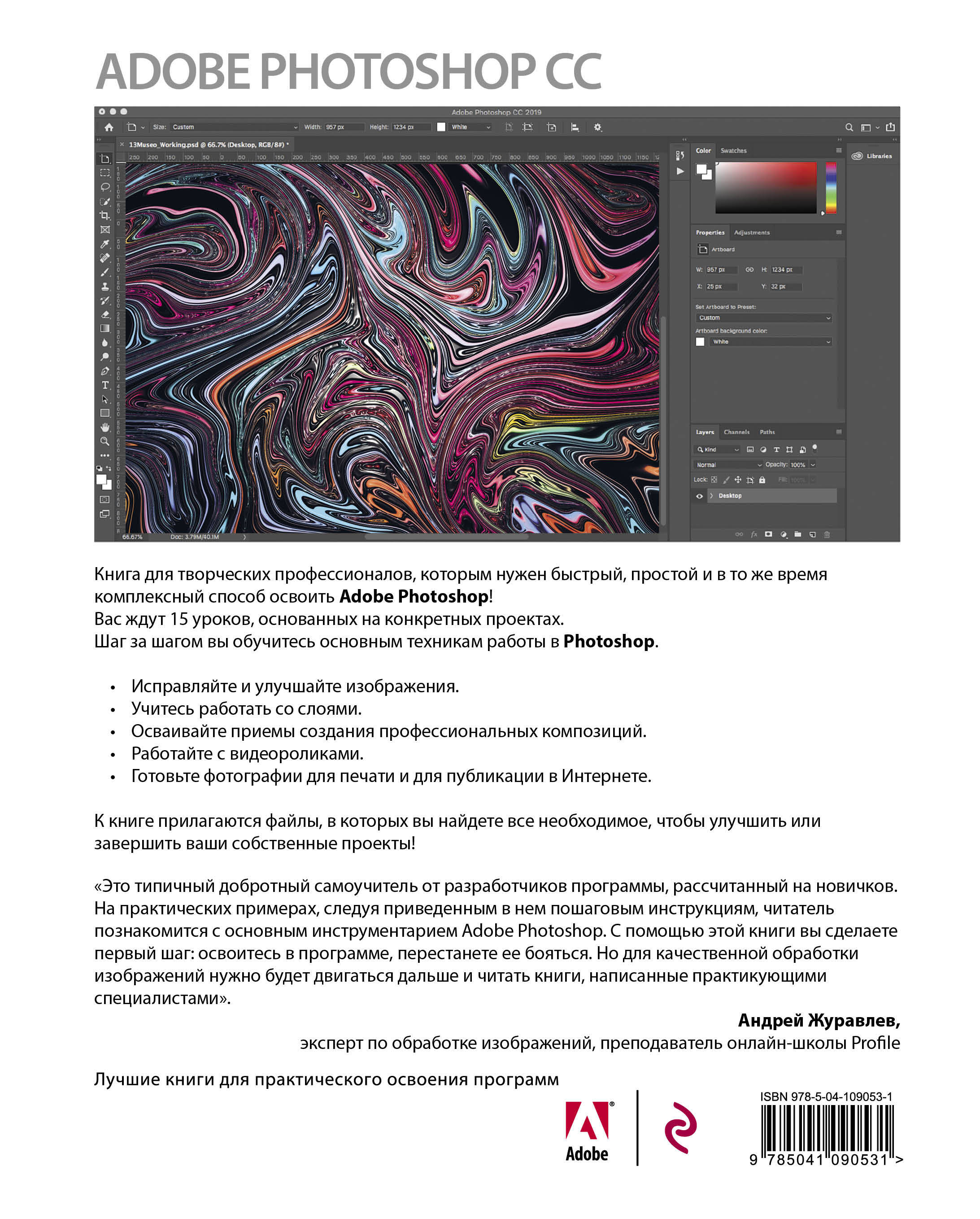 Книга для творческих профессионалов, которым нужен быстрый, простой и в то же время комплексный способ освоить Adobe Photoshop! Вас ждут 15 уроков, основанных на конкретных проектах. Шаг за шагом вы обучитесь основным техникам работы в Photoshop. - Исправляйте и улучшайте изображения. - Учитесь работать со слоями. - Осваивайте приемы создания профессиональных композиций. - Работайте с видеороликами. - Готовьте фотографии для печати и для публикации в Интернете. К книге прилагаются файлы, в которых вы найдете все необходимое, чтобы улучшить или завершить ваши собственные проекты!