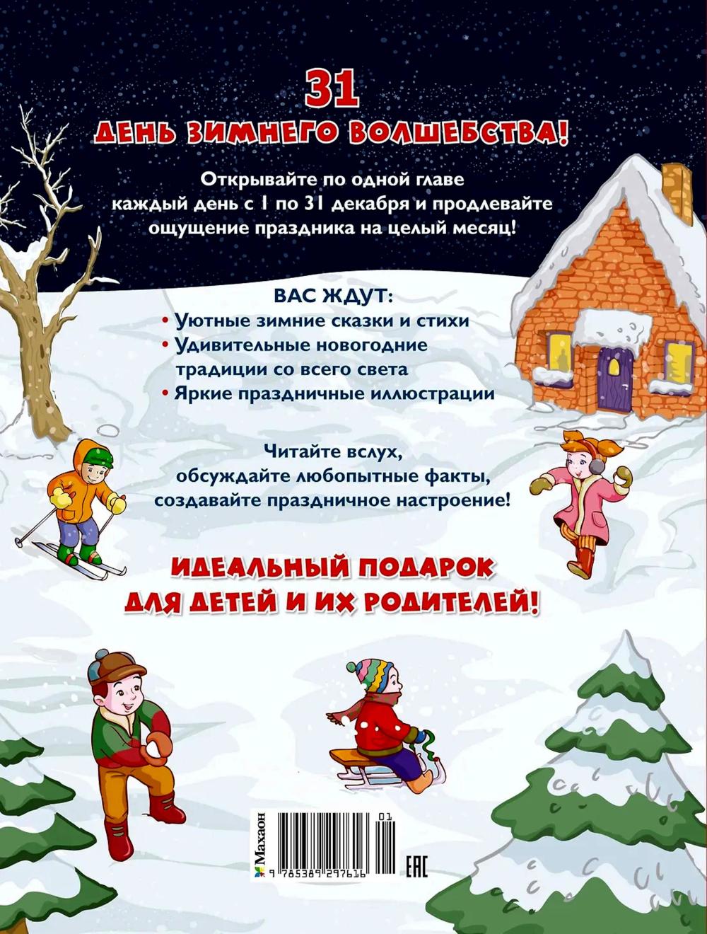 31 день зимнего волшебства! Открывайте по одному разделу каждый день с 1 по 31 декабря и продлевайте ощущение праздника на целый месяц! Вас ждут: • Уютные зимние сказки и стихи • Удивительные новогодние традиции со всего света • Яркие праздничные иллюстрации Читайте вслух, обсуждайте любопытные факты, создавайте праздничное настроение! Как пользоваться? Всего 3 простых шага: 1. Найдите страницу с сегодняшней датой. 2. Узнаёте интересный факт о новогоднем празднике. 3. Прочитайте историю дня! Идеальный подарок для детей и их родителей!| Издательство | Махаон |
