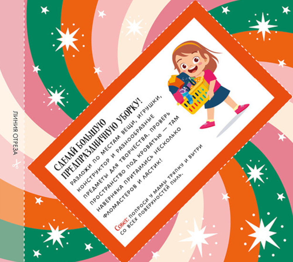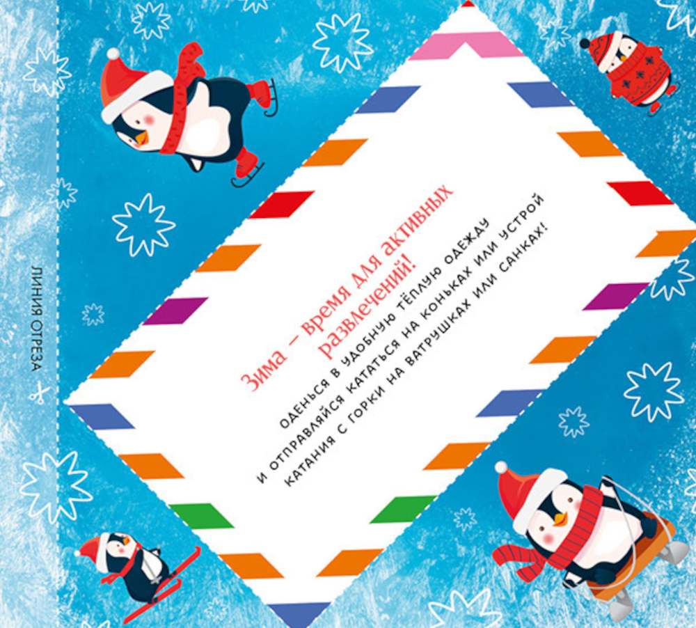 Новый год уже совсем скоро! Каждая страничка адвент-календаря - это одно из писем Дедушки Мороза, в которых ребёнка ждут творческие поделки, мастерилки, список добрых дел и даже новогоднее бинго! Всё, что нужно сделать, - аккуратно отрезать нжную страничку, сложить по линиям сгиба, заклеить наклейкой и спрятать секретное послание под подушку.| Издательство | Клевер-Медиа-Групп |