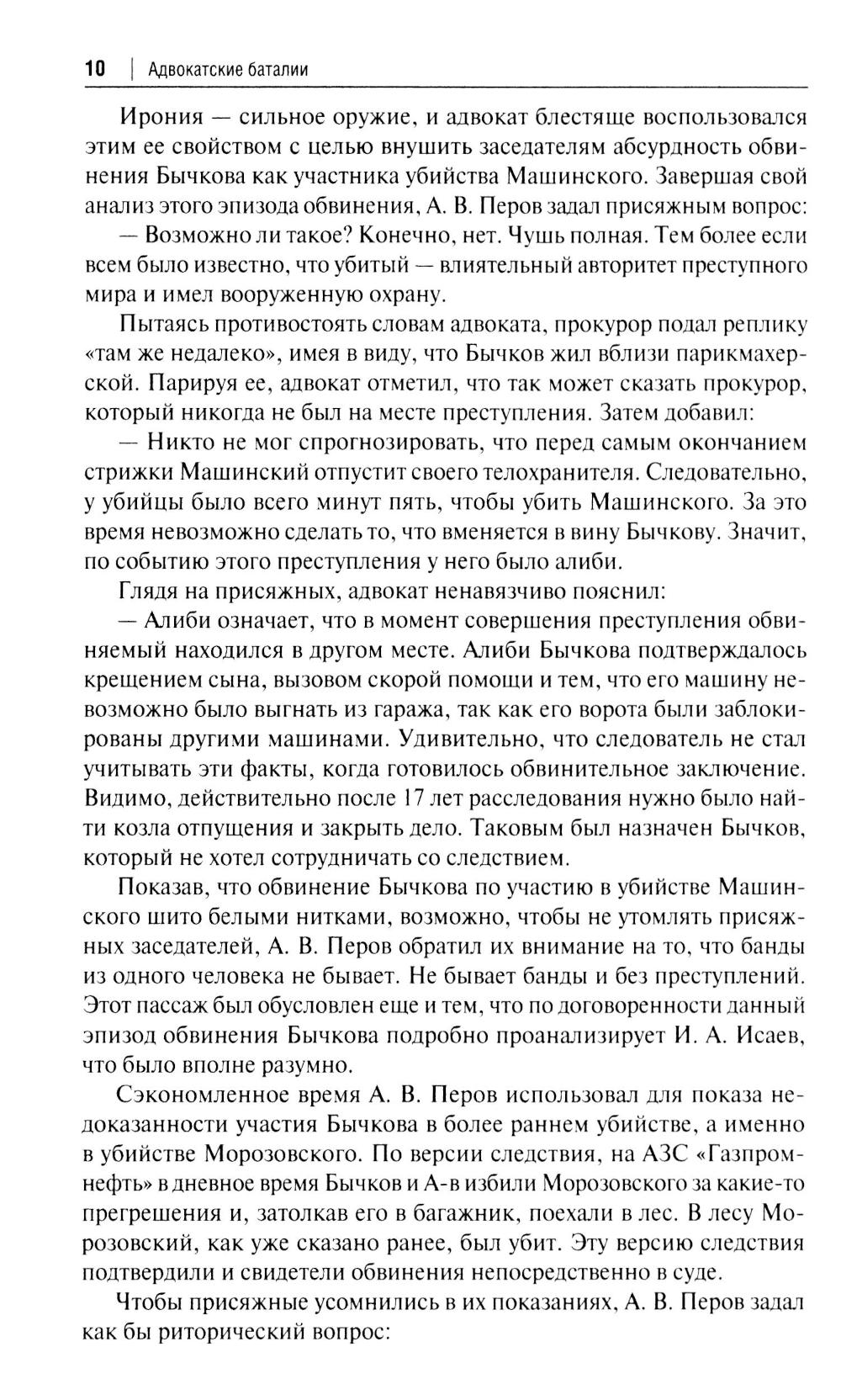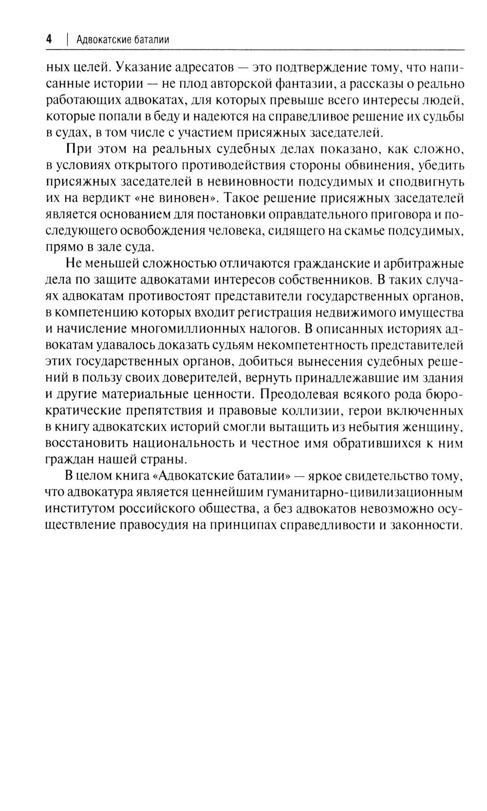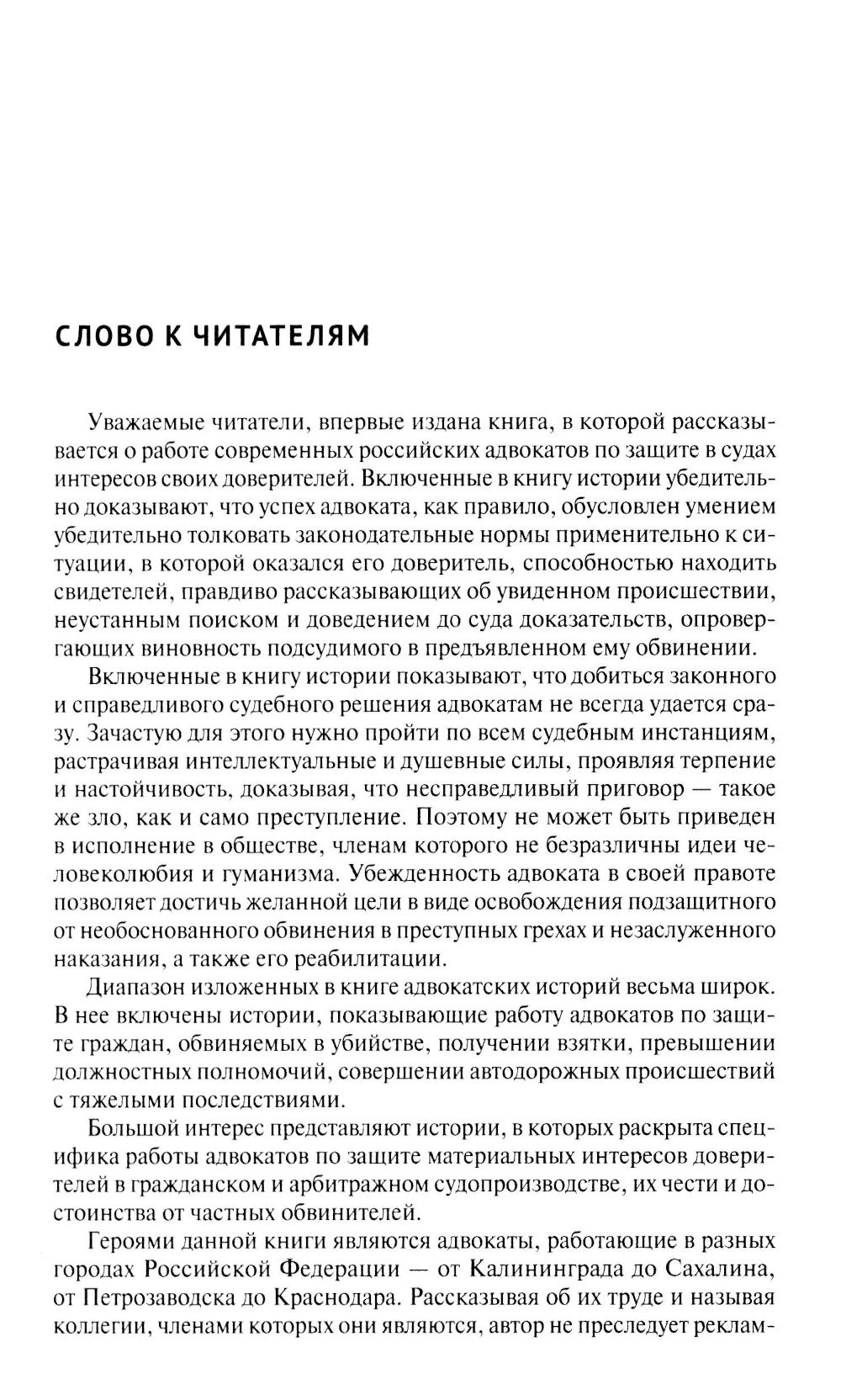 Обязательными участниками судебных процессов являются адвокаты. В данной книге рассказано об их многогранной и кропотливой деятельности по защите интересов своих доверителей в судах в постсоветский период. При этом фамилии упомянутых в историях адвокатов подлинные. По этическим соображениям фамилии их подзащитных изменены или приведены в сокращениях.| Издательство | Блок-Принт |