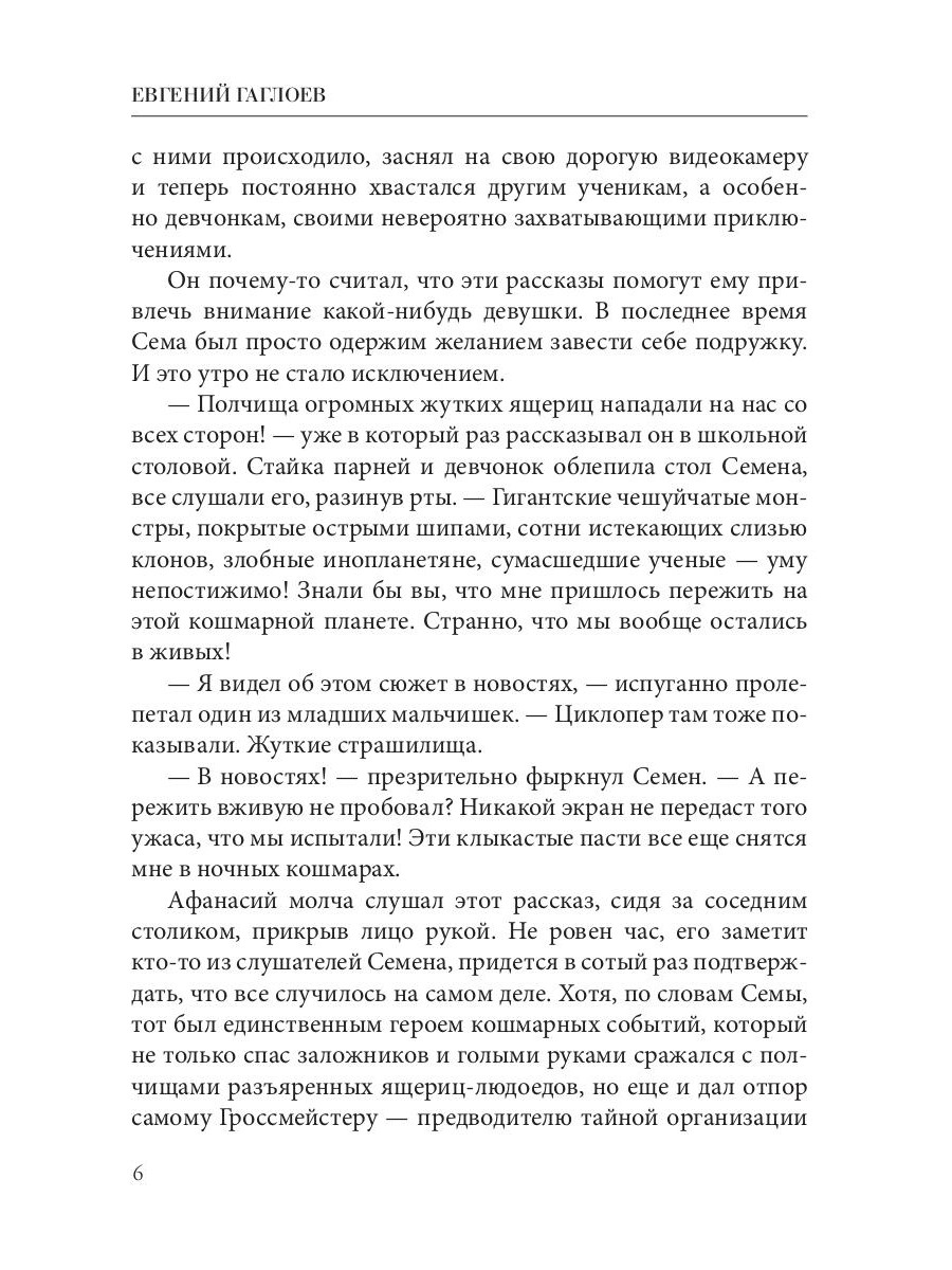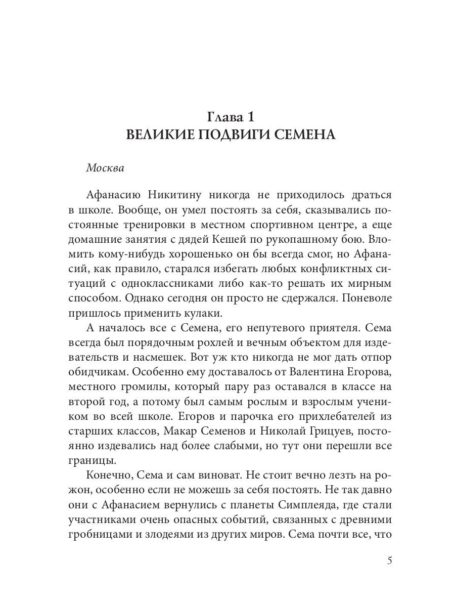 Третья книга о головокружительных приключениях юного авантюриста Афанасия Никитина - тезки знаменитого путешественника, обычного подростка из Москвы XXII века! Фантастические события в жизни семнадцатилетнего Афанасия и его близких лишь продолжают набирать обороты. Пришелец Бете-Негеноши, случайно поселившийся в его теле, оказался вполне дружелюбным и иногда даже спасает парня от неприятностей, которые обрушиваются на него, словно снежная лавина. На солнечных пляжах Земли, в подземельях обледеневшей планеты Менелай, в далекой мертвой галактике, давно стертой со всех космических карт, Афанасия ждут новые столкновения с могущественными «Последователями» и их зловещим Гроссмейстером, а также коварной Полиной Гебельс, которая, как оказалось, хранит еще не один жуткий секрет. Однако, в поисках третьего приспешника Сокрушителя миров, Афанасию придется найти способ в очередной раз противостоять проискам злодеев вселенского масштаба.| Издательство | Т8 RUGRAM |