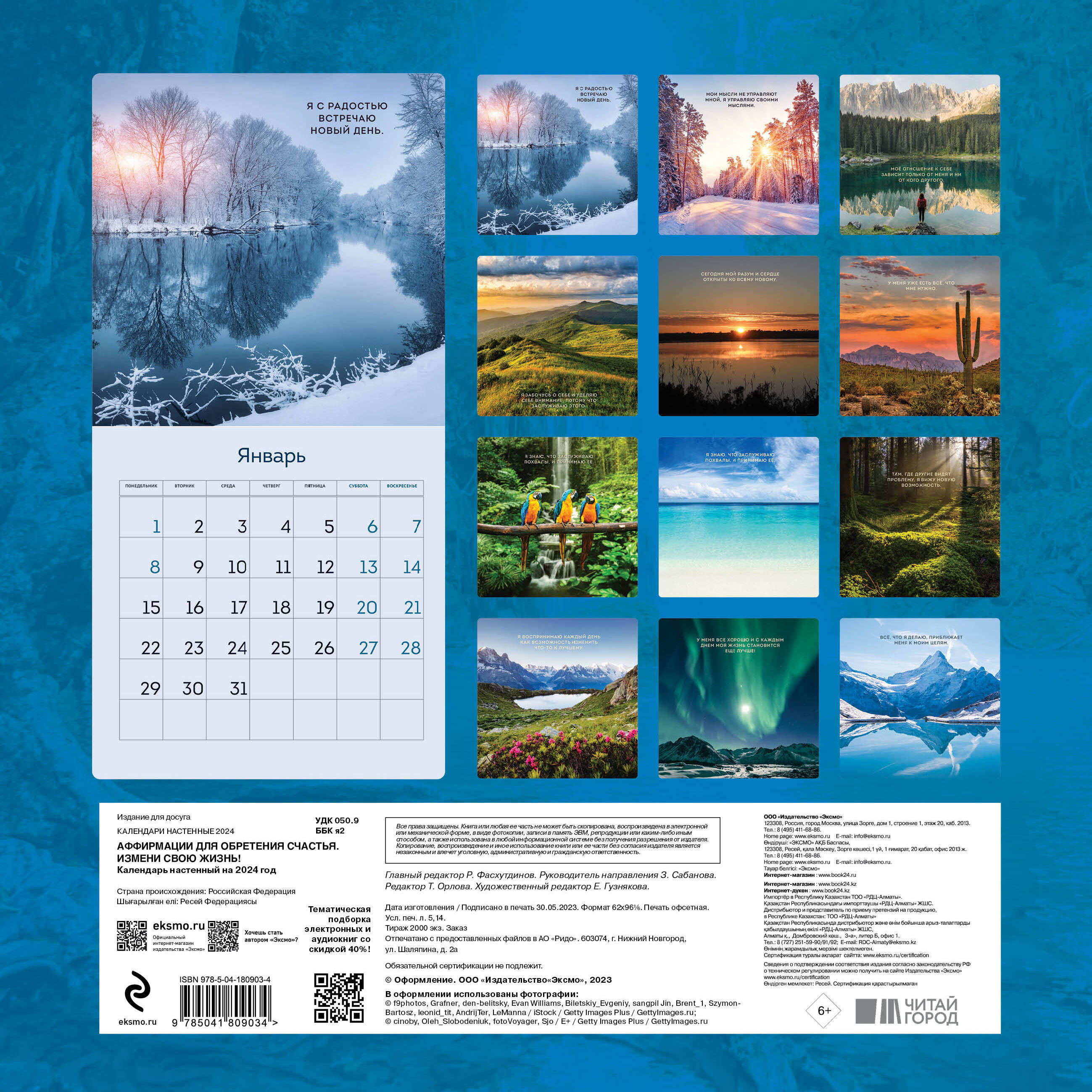 Аффирмации для обретения счастья. Измени свою жизнь! Календарь настенный на 2024 год (300х300)
