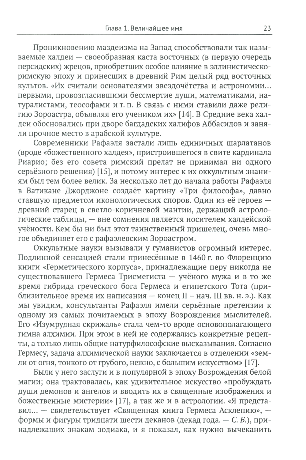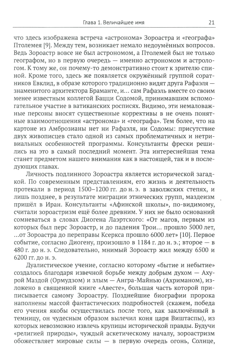 Предлагаемая работа содержит полную расшифровку сюжета знаменитой фрески Рафаэля «Афинская школа» из музеев Ватикана. Основываясь на источниках по истории античной философии (в первую очередь, хрестоматии «Досократики» Г. Дильса), автор смог аргументировано обосновать имена 58 учёных, представленных в символическом храме науки (ранее было известно не более 12 персонажей). Монография состоит из предисловия, семи глав и послесловия. Каждая глава посвящена отдельной художественной группе. Фигуры, выполненные с опорой на иконографическую традицию (Диоген, Пифагор, Эпикур, Сократ, Зороастр и т. п.), являются своеобразными стержнями, позволяющими воссоздать имена их живописных соседей. Центральным и наиболее наглядным героем становится Плотин, который, страдая от близорукости, пишет на ощупь, и, в силу своей привязанности к мраморной скульптуре, имеет внешнее сходство с Микеланджело. Отдельной темой исследования оказался черновой картон из Пинакотеки Амброзиана в Милане, который содержит много интересных сюжетных линий, не получивших развития в законченном шедевре. Книга будет полезна как широкому кругу искусствоведов, философов и культурологов, так и всем читателям, интересующимся историей искусства.| Издательство | ЛЕНАНД |