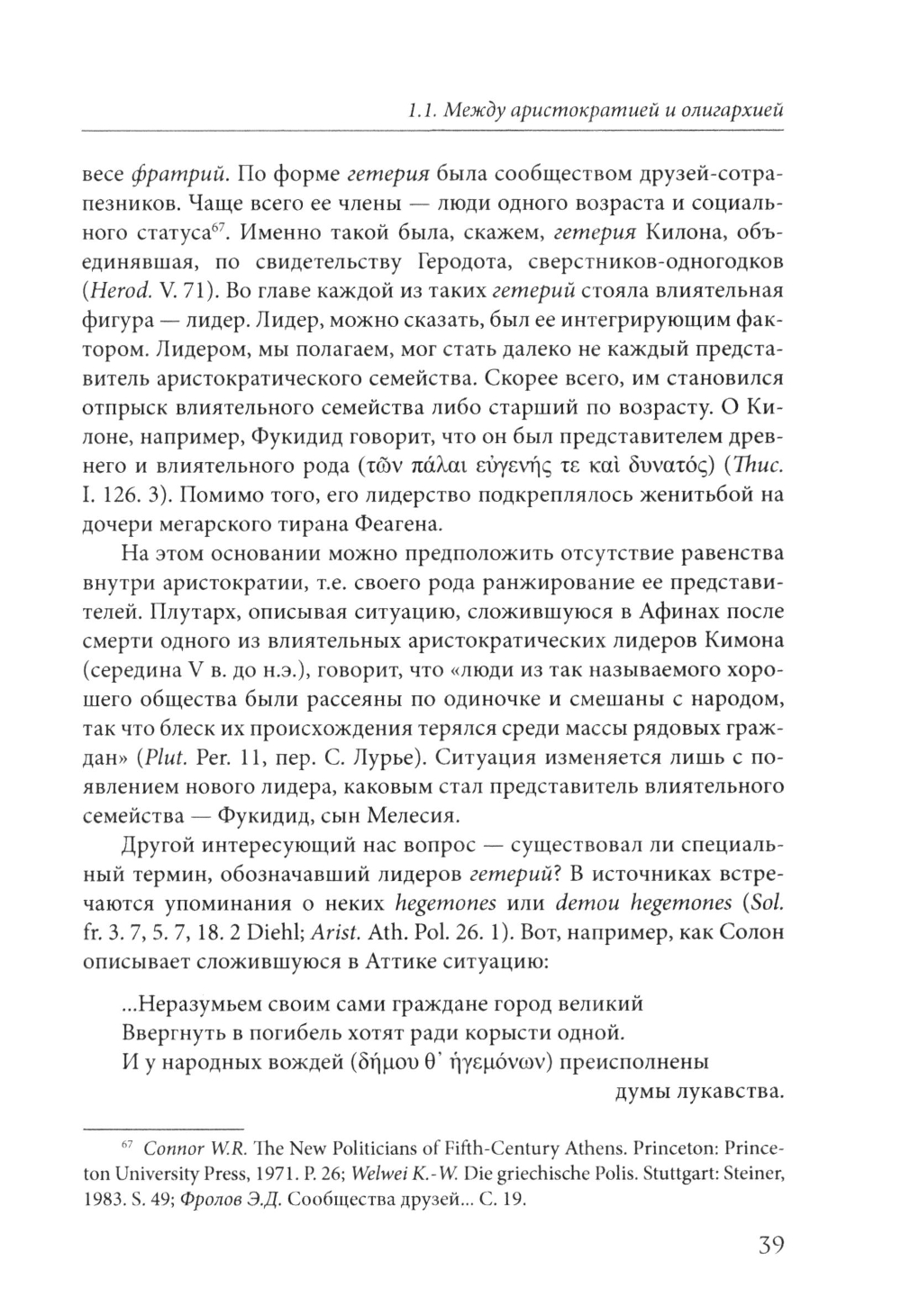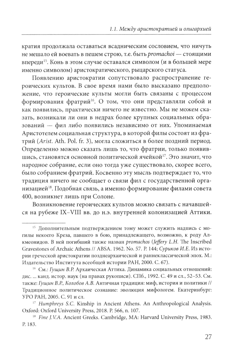В монографии исследуется процесс становления афинской демократии на протяжении архаического и классического периодов (VIII середина V века до н.э.). Вопросы о том, что такое афинская демократия, когда она возникла и какую роль в ее появлении сыграли те или иные социальные слои, остаются дискуссионными на протяжении длительного времени. В книге показано, что одним из значимых стимулов возникновения демократии становится борьба за власть и влияние внутри слоя аристократии, к участию в которой нередко привлекался и афинский демос. В процессе этой борьбы, с одной стороны, создавались равные условия для «лучших» (eunomia, isonomia), а с другой происходило расширение политических прав простого народа. Результатом этих процессов становится государственное устройство, в котором значительную роль играют коллегиальные политические институты, прежде всего народное собрание, избиравшее должностных лиц, и гелиэя (народный суд), осуществлявшая контроль за ежегодно избираемыми магистратами. Тем не менее афинскую демократию нельзя считать народоправством или «властью народа». Сами афиняне характеризовали ее как коллективное правление или власть «большинства» тех, кто обладал политическими правами. Книга адресована как специалистам и исследователям, так и широкому кругу читателей, интересующихся историей Греции.| Издательство | ИД Высшей школы экономики |