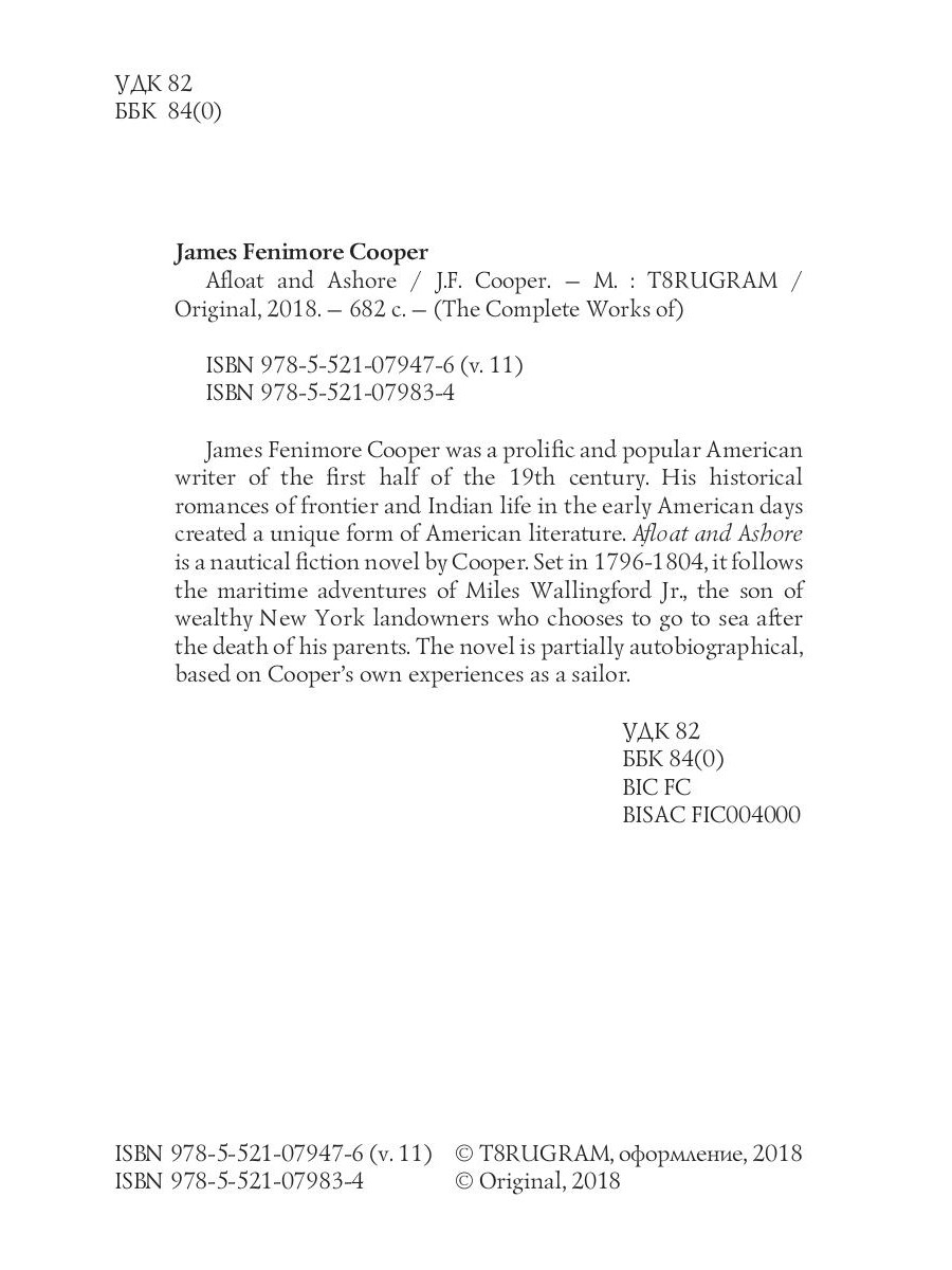 James Fenimore Cooper was a prolific and popular American writer of the first half of the 19th century. His historical romances of frontier and Indian life in the early American days created a unique form of American literature. Afloat and Ashore is a nautical fiction novel by Cooper. Set in 1796-1804, it follows the maritime adventures of Miles Wallingford Jr., the son of wealthy New York landowners who chooses to go to sea after the death of his parents. The novel is partially autobiographical, based on Cooper's own experiences as a sailor.