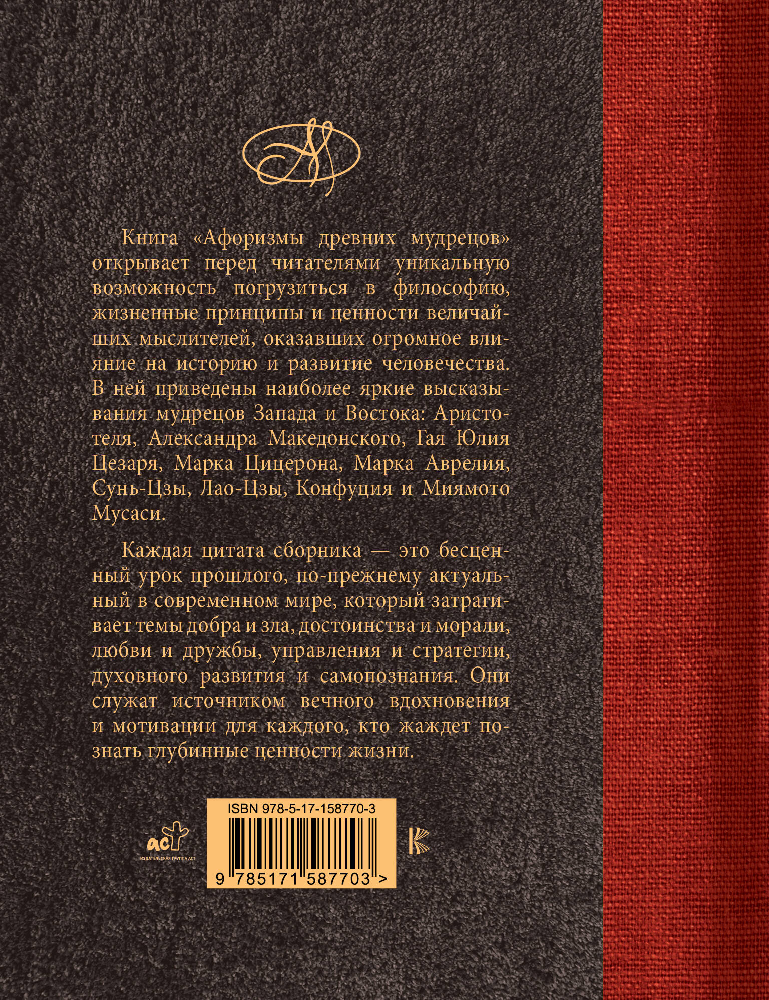 Книга "Афоризмы древних мудрецов" открывает перед читателями уникальную возможность погрузиться в философию, жизненные принципы и ценности величайших мыслителей, оказавших огромное влияние на историю и развитие человечества. В ней приведены наиболее яркие высказывания мудрецов Запада и Востока: Аристотеля, Александра Македонского, Гая Юлия Цезаря, Марка Цицерона, Марка Аврелия, Сунь-Цзы, Лао-Цзы, Конфуция и Миямото Мусаси. Каждая цитата сборника - это бесценный урок прошлого, по-прежнему актуальный в современном мире, который затрагивает темы добра и зла, достоинства и морали, любви и дружбы, управления и стратегии, духовного развития и самопознания. Они служат источником вечного вдохновения и мотивации для каждого, кто жаждет познать глубинные ценности жизни.