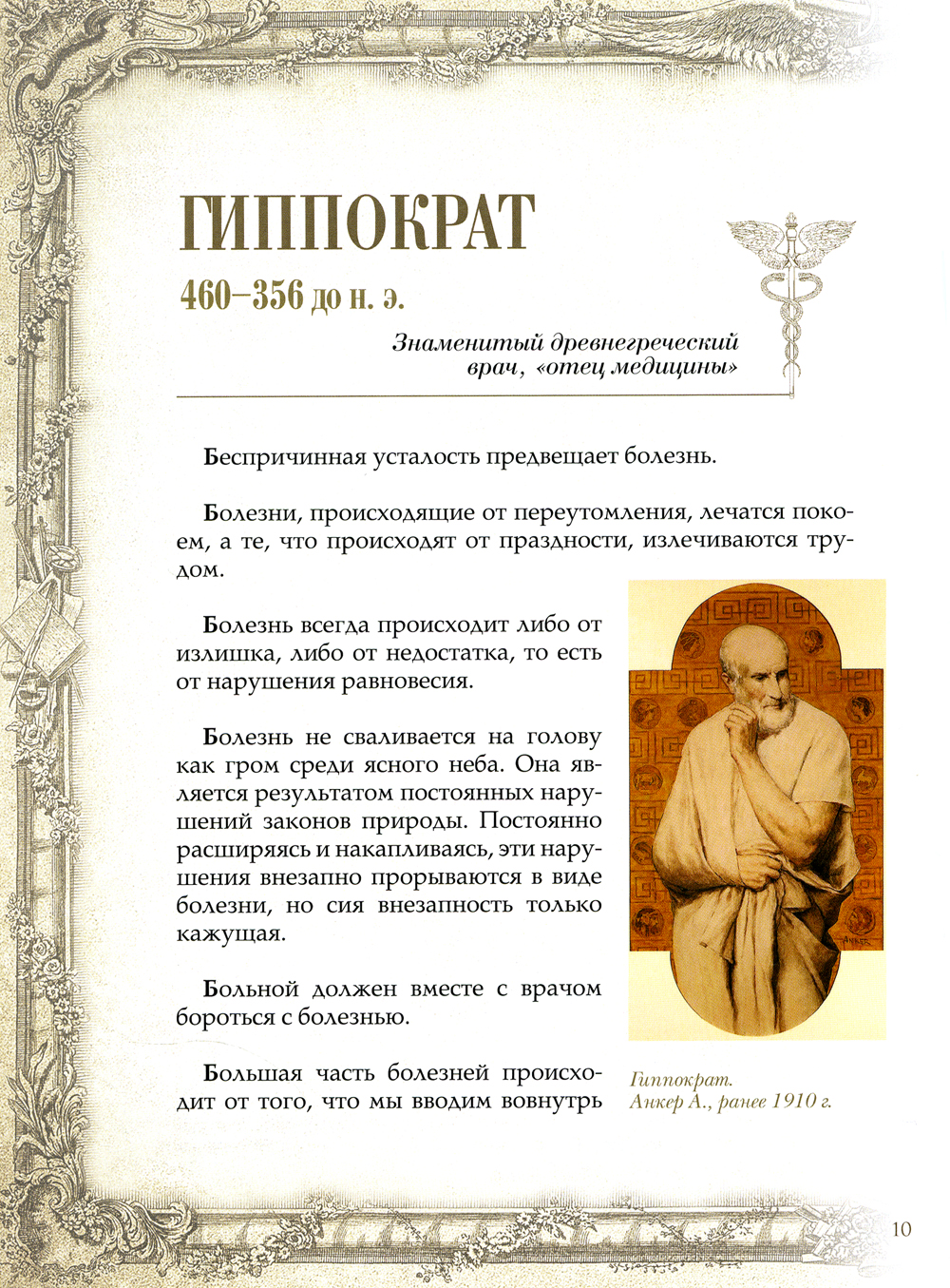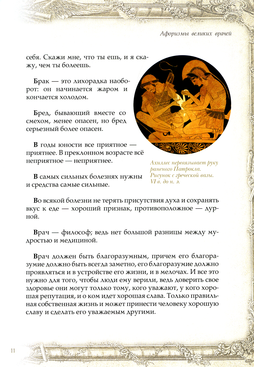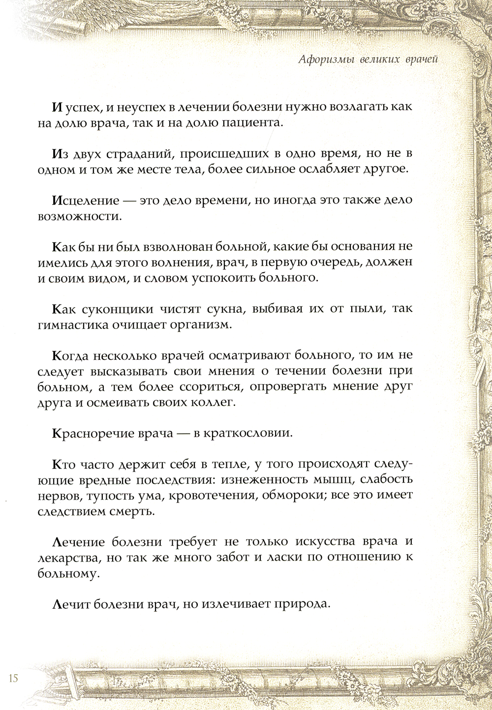 В этом подарочном, красочно иллюстрированном издании собраны лучшие афоризмы самых известных и знаменитых врачей с древнейших времен до середины XX века - от Гиппократа, Галена и Авиценны до Пирогова, Склифосовского, Фрейда и многих других. Самобытные, уникальные высказывания великих врачей прошлых веков содержат мудрость тысячелетий, отражают смысл, цель, цену человеческой жизни, сохраняют свою актуальность и в современном мире.| Издательство | Просвещение-Союз |