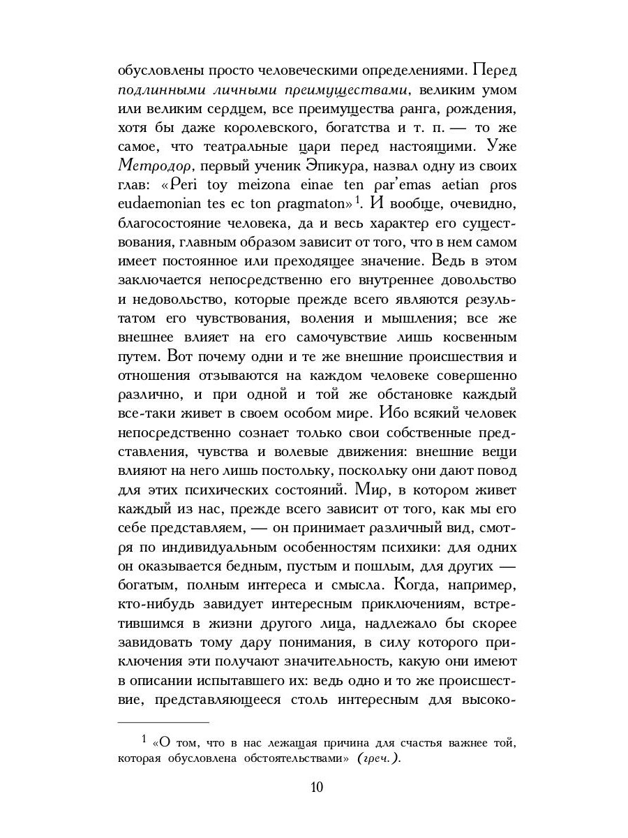 «Афоризмы житейской мудрости» - один из разделов первого тома сборника «Parerga und Paralipomena» («Дополнения и пропуски», 1851) выдающегося немецкого философа Артура Шопенгауэра (1788-1860). Это своего рода эвдемонистический трактат - руководство к «искусству провести свою жизнь возможно приятнее и счастливее». Во введении пессимист Шопенгауэр пишет, что его философия отрицает соответствие человеческой жизни понятию о счастливом существовании - таком, которое можно было бы предпочесть небытию. Шопенгауэр вынужден пойти на компромисс и посмотреть на счастье не с высшей, метафизико-этической, а с обычной, эмпирической точки зрения. Результатом этого философского компромисса и стала настоящая книга - «наставление в счастливом существовании», написанное человеком, убежденным, что такое существование невозможно.| Издательство | Т8 RUGRAM |